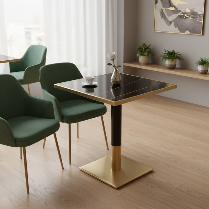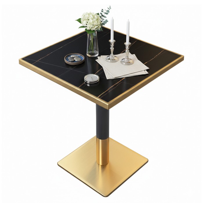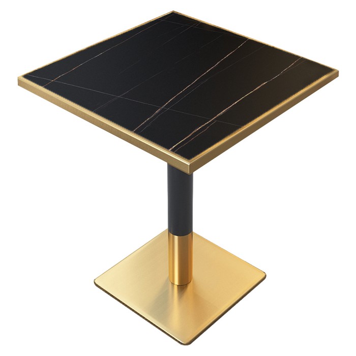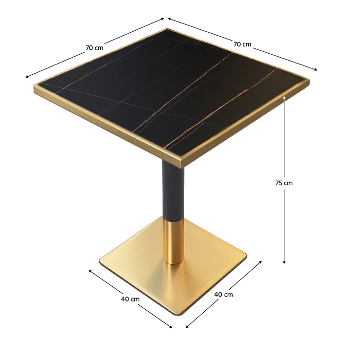 Jedálenský bistro stôl Preston 70x70 cm - čierny mramor / čierna / zlatá