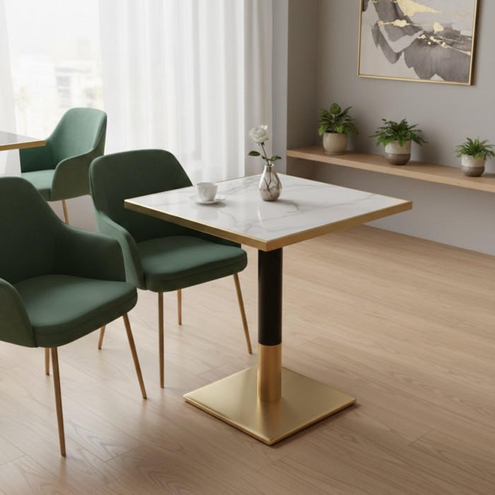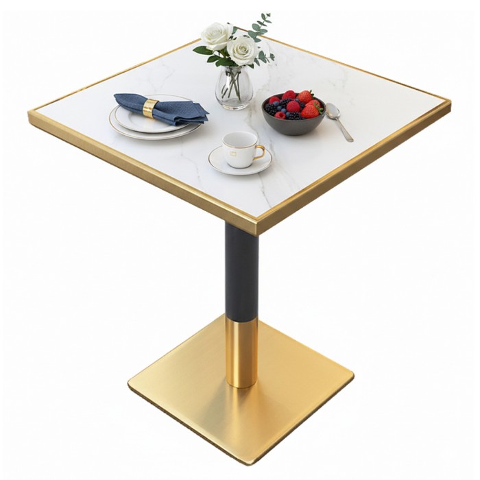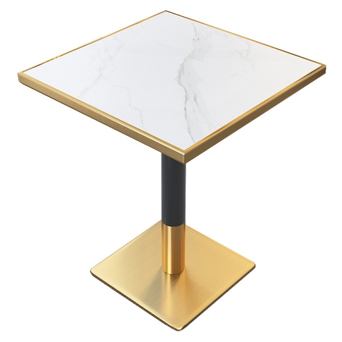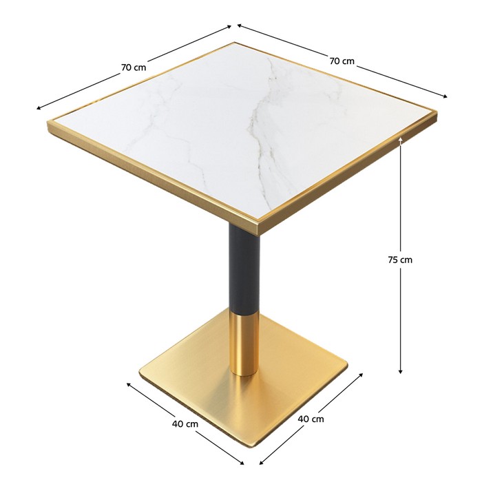 Jedálenský bistro stôl Preston 70x70 cm - biely mramor / čierna / zlatá