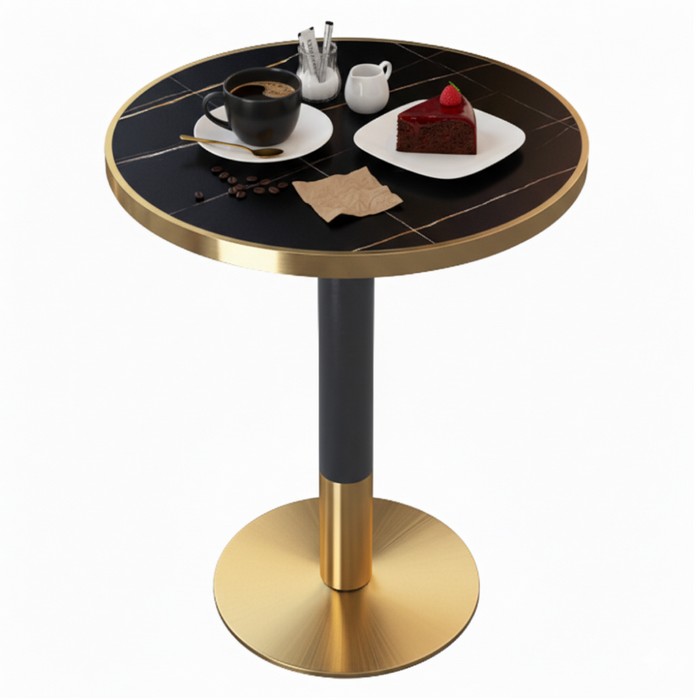 Jedálenský bistro stôl Oren 80 - čierny mramor / čierna / zlatá