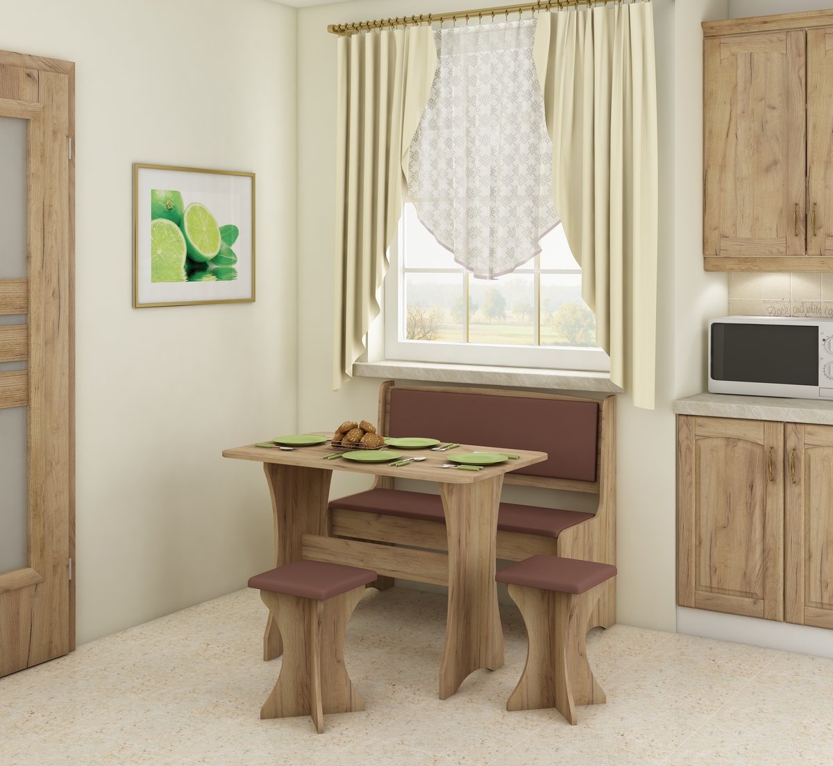 Jedálenský set ZKU-02/04 - craft zlatý / hnedá ekokoža