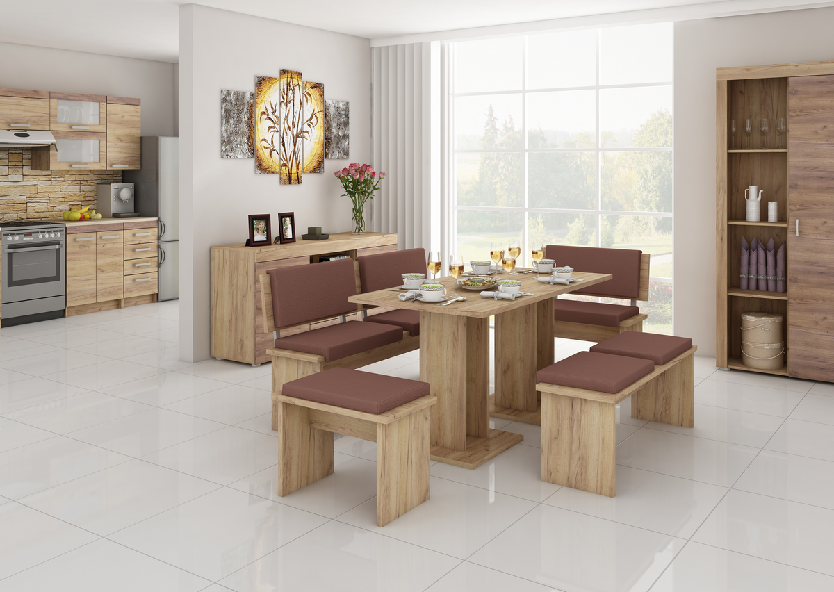 Jedálenský stôl BON-04 sa skladá zo stabilnej štvorcovej podstavy a robustnej nohy, na ktorej je vrchná štvorcová doska. K stolu je možné pohodlne usadiť štyroch ľudí a je vhodný na každodenné stolovanie, či už vo veľkej alebo malej jedálni. Stôl vďaka svojmu dizajnu hravo zapadne do štýlu takmer každej kuchyne. Je vyrobený z kvalitnej, laminovanej DTD, vo farbe crft zlatý, pričom na výber sú aj iné farebné prevedenia. Bonusom sú hrany obohatené o úpravu ABS, ktorá je odolná voči mechanickému poškodeniu, vlhkosti a udržuje farebnú stálosť. Hrúbka drevotriesky je 16 mm a 25 mm. Rozmery stola (ŠxHxV): 75x75x75 cm.