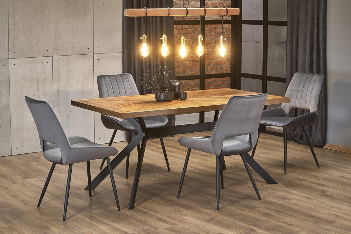 Dokonalý dizajnový jedálenský stôl TYSON sa stane dominantou Vašej kuchyne či jedálne a urobí z nej srdce Vášho domova. Vďaka jeho jednoduchému, no výraznému dizajnu je vhodné ho umiestniť do moderných aj klasických interiérov. Vrchná doska stola je vyrobená z kvalitnej MDF s prírodnou dyhou v krásnom prevedení orech. Elegantné nohy stola sú vyrobené z ocele s práškovým nástrekom čiernej farby. Za stôl je možné pohodlne usadiť 6 osôb. Jeho celkové rozmery sú (ŠxHxV): 160x90x76 cm. Jeho maximálna nosnosť je 30 kg a je dodávaný v demonte. Spojenie kvalitných materiálov a dokonalého dizajnu je základom pre vybudovanie harmonického domova. Užívajte si chvíle v kruhu najbližších, pri dobrom jedle, v spoločnosti jedálenského stola Tyson.