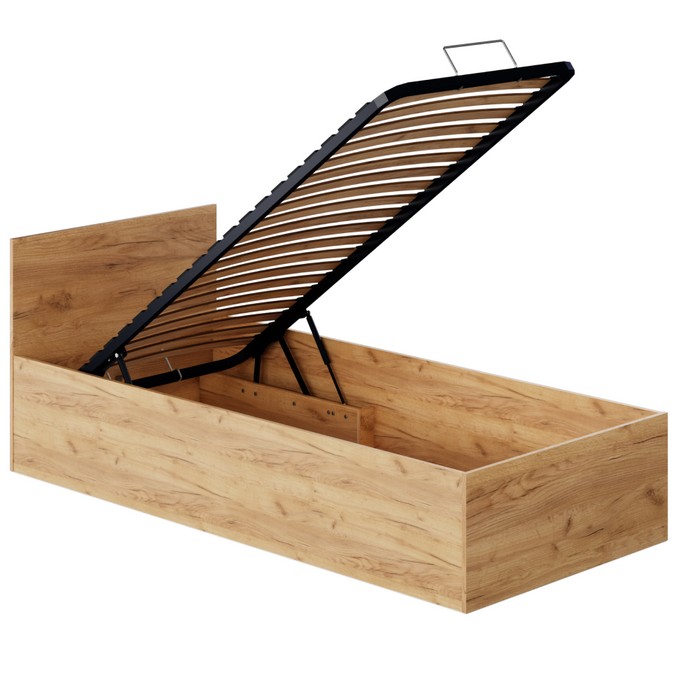 Hľadáte posteľ, ktorá kombinuje moderný dizajn s praktickými riešeniami? DOLI 90 je ideálnou voľbou pre každého, kto si potrpí na jednoduché línie a účelnosť. Vďaka prevedeniu v dekore dub craft zlatý pôsobí prirodzene a štýlovo, a zároveň sa ľahko kombinuje s ďalším nábytkom. S celkovými rozmermi (ŠxHxV): 93,6x203,2x78,7 cm poskytuje pohodlný priestor na spanie s ložnou plochou 90x200 cm, čo ju predurčuje ako skvelé riešenie do detskej, študentskej či hosťovskej izby, ale aj do menšej spálne. Laminovaná DTD s hrúbkou 1,6 cm zaručuje pevnosť a dlhú životnosť nábytku. Pod pevným kovovým roštom (dodávaný v monte) sa nachádza priestranný úložný priestor, kam ľahko uložíte posteľnú bielizeň, sezónne oblečenie či iné nevyhnutnosti. Výška po rošt je 24,1 cm, bočnice dosahujú výšku 39,9 cm. Posteľ sa dodáva bez matraca, s odporúčanou minimálnou výškou 10 cm. Premeňte svoju izbu na praktické a zároveň útulné miesto na oddych.