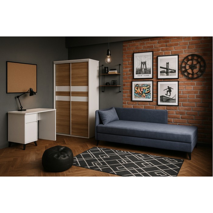 Jednolôžková posteľ (váľanda) RINUN je praktickým a štýlovým riešením do detskej, študentskej alebo hosťovskej izby, no rovnako dobre poslúži aj ako lôžko na príležitostné spanie. Vďaka univerzálnemu prevedeniu ju možno zložiť s čelom na ľavej alebo pravej strane, takže sa bez problémov prispôsobí každému priestoru. Lôžko je celočalúnené látkou Zetta 300 v modrej farbe, ktorá je vodoodolná a vyniká oderuodolnosťou 55 000 oderov podľa testu Martindale. Materiál tak zaručuje dlhú životnosť aj jednoduchú údržbu. Bonelové jadro v kombinácii s molitanom T25 a matrac strednej tvrdosti T3 poskytujú optimálnu oporu tela a pohodlný spánok. Pod sedacou časťou sa nachádza úložný priestor s výklopným mechanizmom, ideálny na uskladnenie posteľnej bielizne, diek alebo sezónneho oblečenia. Váľanda je doplnená o bočné čelá, ktoré chránia stenu pred odermi, a vankúš s rozmermi 74x23 cm, ktorý zvyšuje komfort pri odpočinku. Rozmery váľandy sú (ŠxHxV): 95x205x85 cm, pričom výška spania dosahuje 51 cm. Stabilitu zabezpečujú plastové nožičky s výškou 12 cm. Maximálna nosnosť je 100 kg. Váľanda Rinun sa dodáva v demonte a je skvelou voľbou pre tých, ktorí hľadajú praktickosť, komfort a moderný dizajn v jednom.