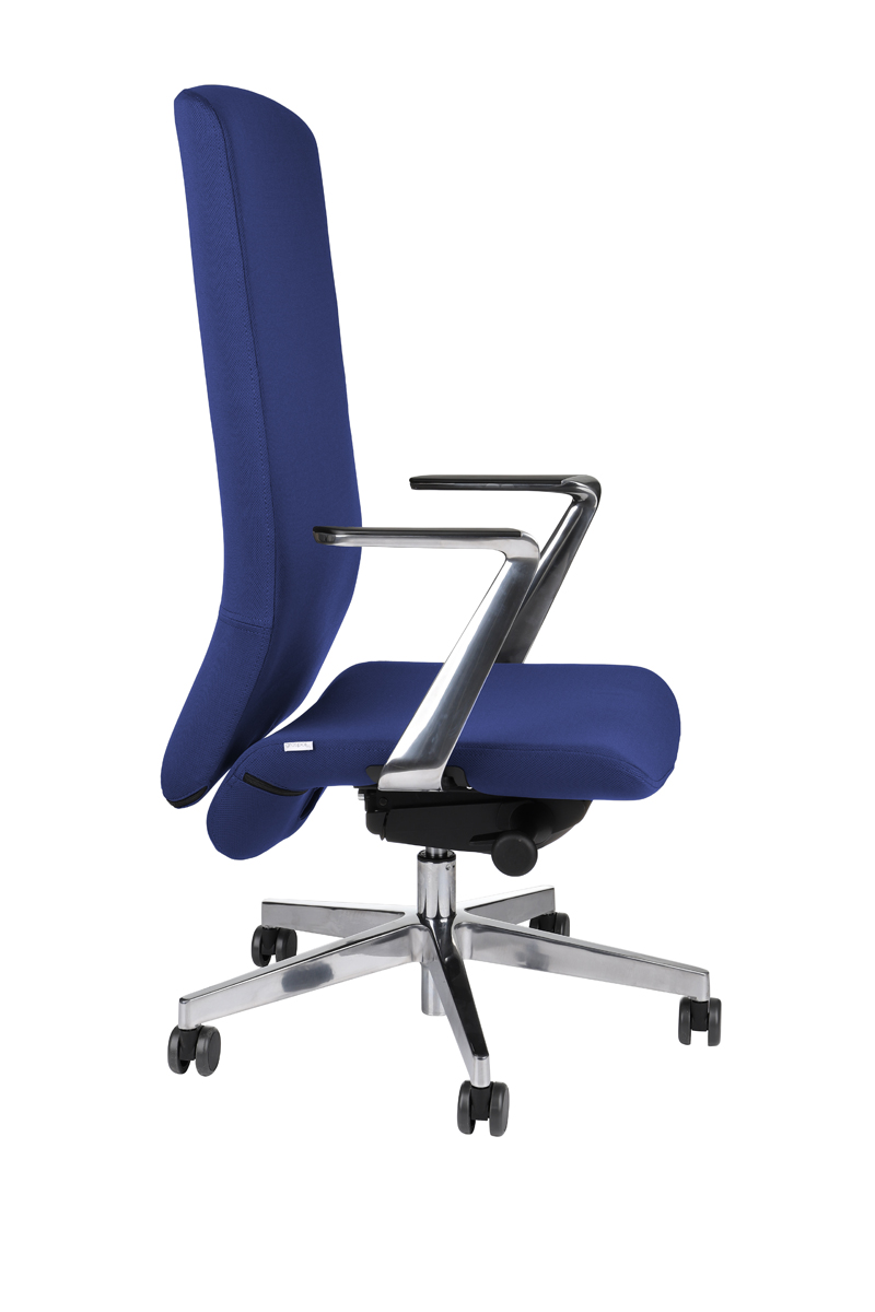 Otočná kancelárska stolička s podrúčkami STARMIT AL1 je ideálnou voľbou pre vysokých používateľov. Vďaka svojmu vysokému operadlu vyrieši problém pre používateľov dokonca vyšších ako 200 cm, ktorí majú často problém zohnať stoličku, ktorá by im optimálne vyhovovala a zabezpečila dokonalé pohodlie a oporu pre chrbát. Je vhodné ju umiestniť do kancelárií, pracovní či izieb študentov. Jedinečná konštrukcia stoličky sa dokonale prispôsobí pohybom používateľa. Technológia Smart Move podopiera Váš chrbát nie len pri statickej práci, ale aj pri všetkých pohyboch, ktoré vykonáte. Rám operadla aj sedadla stoličky sú obalené penou, technológiou liatia, ktorá umožňuje nastaviť jej hustotu a pružnosť tak, aby sa prispôsobila dynamickej práci sedadla aj operadla. Pena v technológii vylievania si zachováva svoje parametre počas dlhoročného používania. Obojstranne čalúnené operadlo stoličky je jedno z najvyšších na trhu a okrem toho je ešte výškovo nastaviteľné o 5 cm. V maximálne výške meria až 80 cm a kvôli nastaveniu jeho výšky ani nemusíte vstať zo stoličky. Odolná látka použitá na čalúnenie je v nadčasovom tmavomodrom prevedení. Látka Flex je priedušná tkanina so zaujímavou štruktúrou sieťoviny, má intenzívne farby a je vyrobená zo 100 % polyestru. Má veľmi dobré technické vlastnosti, vďaka ktorým vyzerá dobre aj po rokoch používania. Odolnosť proti oderu je až 80 000 cyklov Martindale, má vysokú odolnosť voči treniu za sucha aj za mokra 4-5 a tiež je odolná proti žmolkovaniu 4-5. Je nehorľavá podľa EN 1021 časť 1 (cigarety) a EN 1021 časť 2 (zápalky).Celková gramáž látky je 480 g/m2. Operadlo disponuje aj funkciou nastavenia hĺbky bedrového profilu, ktorá je ovládaná pomocou gombíka umiestneného pod sedadlom. Stolička je vybavená aj synchronizovaným pohybovým mechanizmom LP11, kde je pohyb operadla synchronizovaný s pohybom sedadla, avšak pohyb sedadla je oveľa menej výrazný. Vďaka tomuto mechanizmu si môžete nastaviť aj výšku sedadla podľa Vašich potrieb a taktiež prispôsobiť hĺbku sedadla v rozsahu 5 cm. O odľahčenie Vášho chrbta a ramien sa postarajú dizajnové podrúčky, z lešteného hliníka, v prevedení chróm. Pre väčšie pohodlie sú doplnené o polyuretánovú podložku. Stabilitu, pevnosť a jednoduché presúvanie po miestnosti zabezpečí pevná päťramenná podstava z lešteného hliníka vo farbe chróm, ktorá je ukončená čiernymi mäkkými kolieskami, s priemerom 60 mm. Rozmery stoličky sú (ŠxHxV): 70x70x118,5-133,5 cm, výška sedu je 43,5 až 55,5 cm, šírka sedu je 49 cm a hĺbka 41,5 až 46,5 cm. Dodávaná je v demonte a jej maximálna nosnosť je do 150 kg.