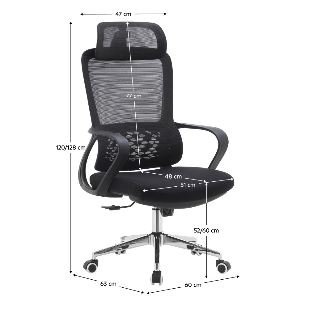 Predstavujeme vám kancelárske kreslo FOSTER TYP 1, ktoré spája moderný dizajn, vysoký komfort a spoľahlivú funkčnosť. Je ideálne pre každého, kto trávi dlhé hodiny pri práci a chce sedieť pohodlne aj zdravo. Vďaka nastaviteľnej opierke hlavy a ergonomicky tvarovanej bedrovej opierke chrbta podporuje správne držanie tela a znižuje zaťaženie chrbtice. Kreslo je vyrobené z kombinácie čiernej sieťoviny, látky, plastu a kovu, pričom chrómová podstava mu dodáva elegantný vzhľad. Textília s oderuodolnosťou 80 000 cyklov Martindale a sieťovina s odolnosťou až 90 000 cyklov garantujú dlhú životnosť aj pri intenzívnom používaní. S rozmermi 60x63x120-128 cm, šírkou sedu 51 cm, hĺbkou sedu 48 cm a šírkou chrbtovej opierky 47 cm poskytuje dostatok priestoru pre pohodlné sedenie. Výška sedu je nastaviteľná od 52 do 60 cm, zatiaľ čo výška chrbtovej opierky dosahuje 77 cm. Nosnosť kresla je 110 kg, pričom jeho hmotnosť je len 10,9 kg, čo zaručuje stabilitu a zároveň jednoduchú manipuláciu. O hladký pohyb po kancelárii sa starajú univerzálne kolieska vhodné na tvrdé aj mäkké podlahy. Praktická funkcia hojdania a možnosť nastavenia výšky sedu vám umožnia prispôsobiť kreslo presne podľa vašich potrieb. Foster Typ 1 sa stane spoľahlivou a štýlovou súčasťou vášho pracovného prostredia. Dodáva sa v demonte, takže si ho jednoducho zložíte priamo u vás doma alebo v kancelárii.
