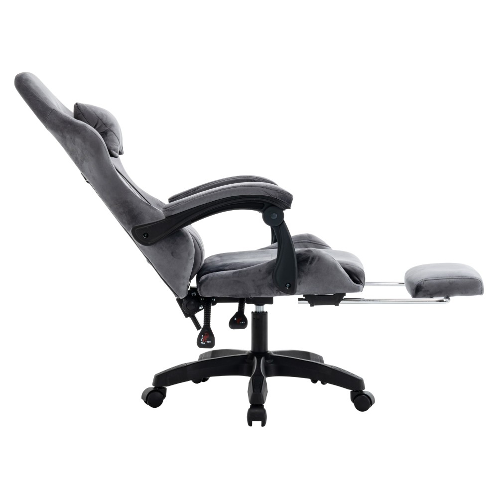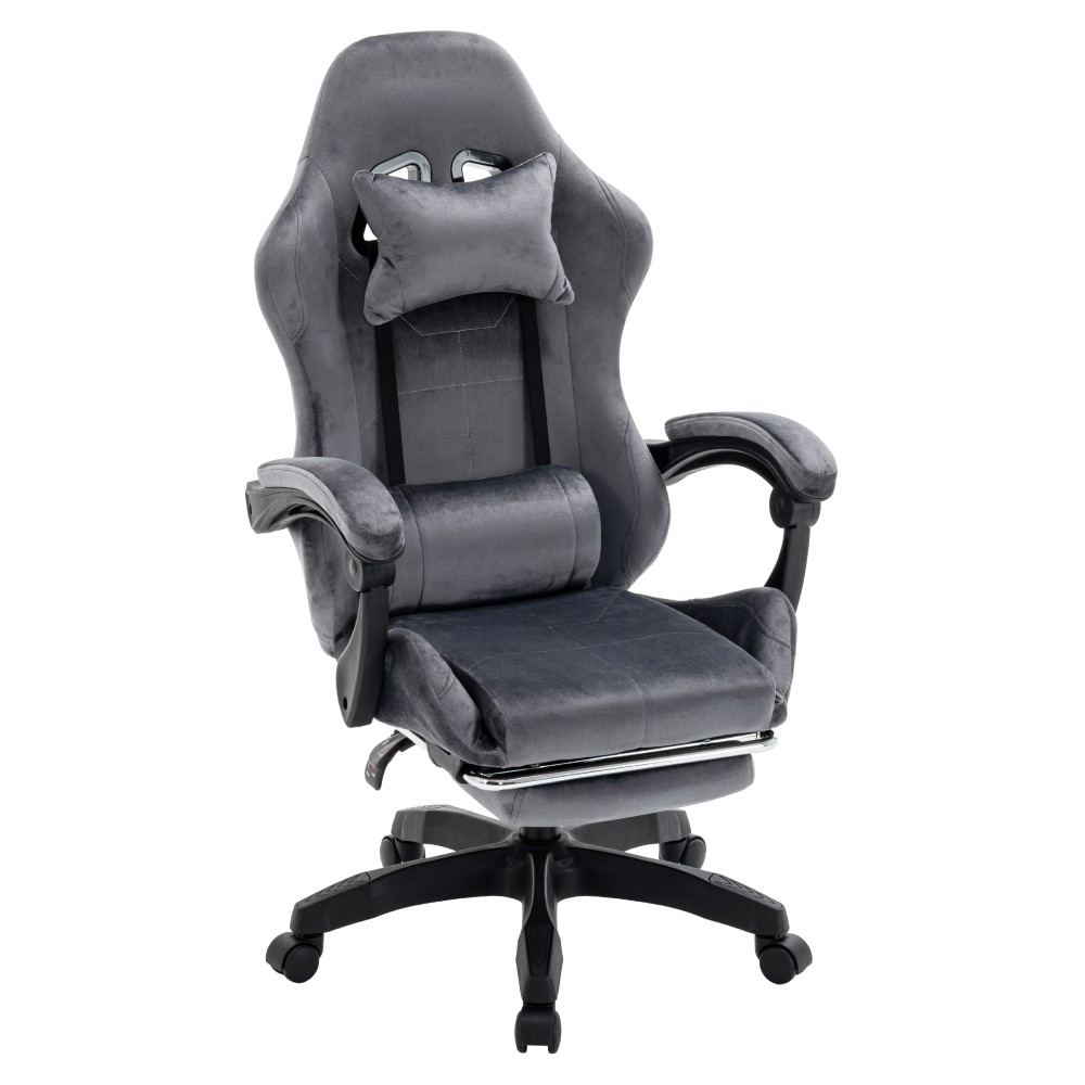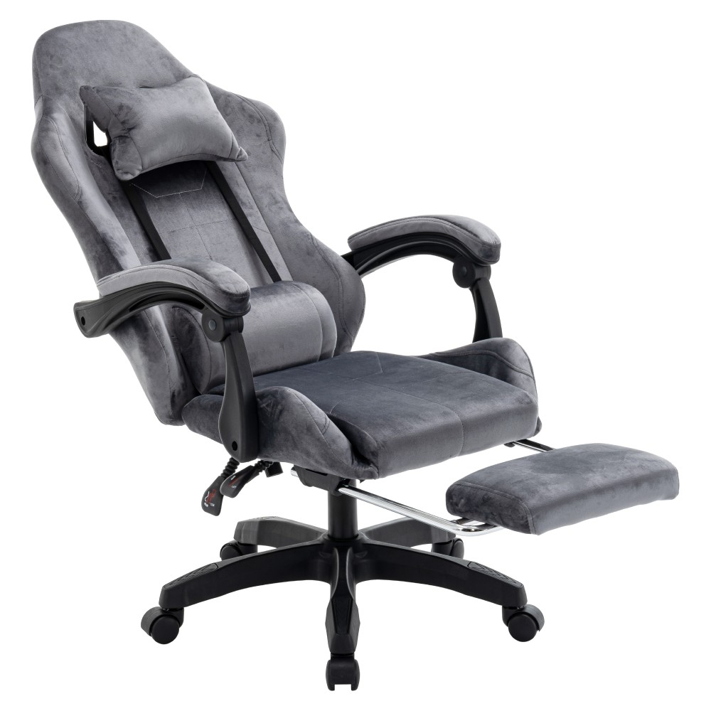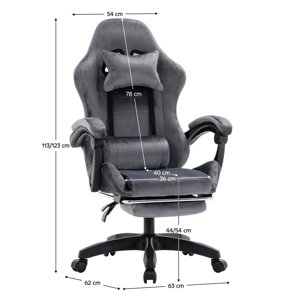 Kreslo LOPES je ideálne pre dlhé sedenie pri práci aj hraní hier a zaujme moderným dizajnom inšpirovaným hernými modelmi. Poskytuje vysoký komfort vďaka nastaviteľnej opierke hlavy, polohovateľnej chrbtovej opierke so sklonom od 90 do 135 stupňov a čalúneným opierkam na ruky. Súčasťou je aj odnímateľná opierka hlavy a bedrová opierka, ktoré zvyšujú pohodlie pri sedení. Praktická výsuvná podnož umožňuje uvoľniť nohy a dopriať si oddych počas dňa. Kreslo má nastaviteľnú výšku sedu a je vybavené mechanizmom hojdania. Stabilitu zabezpečuje päťramenná podstava a jednoduchý pohyb umožňujú univerzálne kolieska vhodné na tvrdé aj mäkké podlahy. Konštrukcia je otočná a vyrobená z kombinácie látky a plastu, čo zaručuje odolnosť aj jednoduchú údržbu. Oderuodolnosť textílie podľa testu Martindale dosahuje 15 000 oderov. Farebné prevedenie v sivej a čiernej pôsobí elegantne a hodí sa do kancelárie, pracovne aj herného priestoru. Rozmery kresla sú (ŠxHxV): 63x62x113-123 cm, pričom výška sedu je nastaviteľná od 44 do 54 cm. Šírka sedu je 36 cm a jeho hĺbka 40 cm. Chrbtová opierka má výšku 78 cm a šírku 54 cm. Nosnosť kresla je 130 kg a jeho hmotnosť je 14 kg. Kreslo sa dodáva v demontovanom stave.