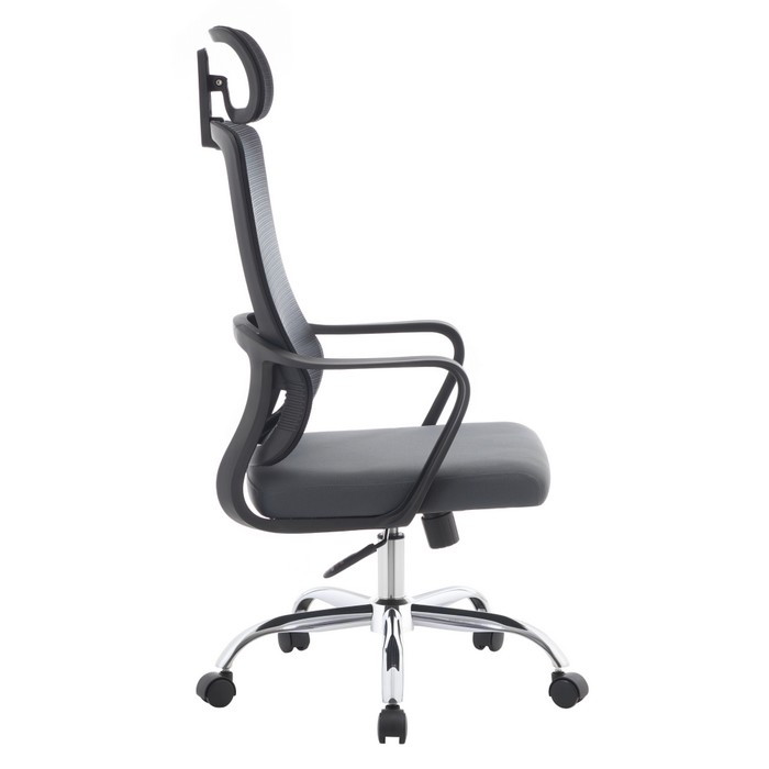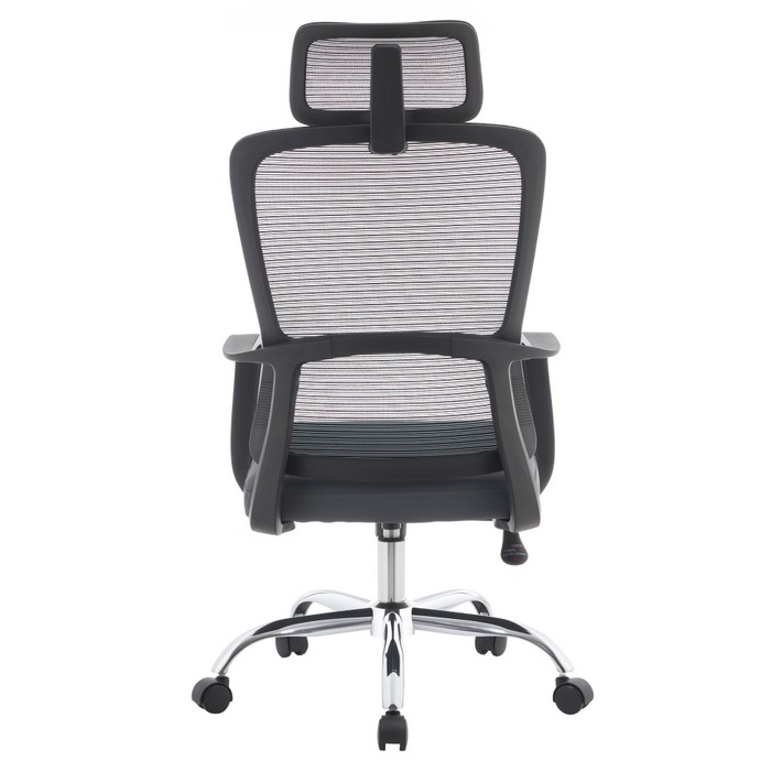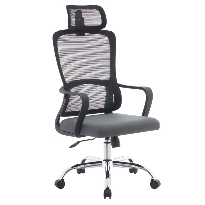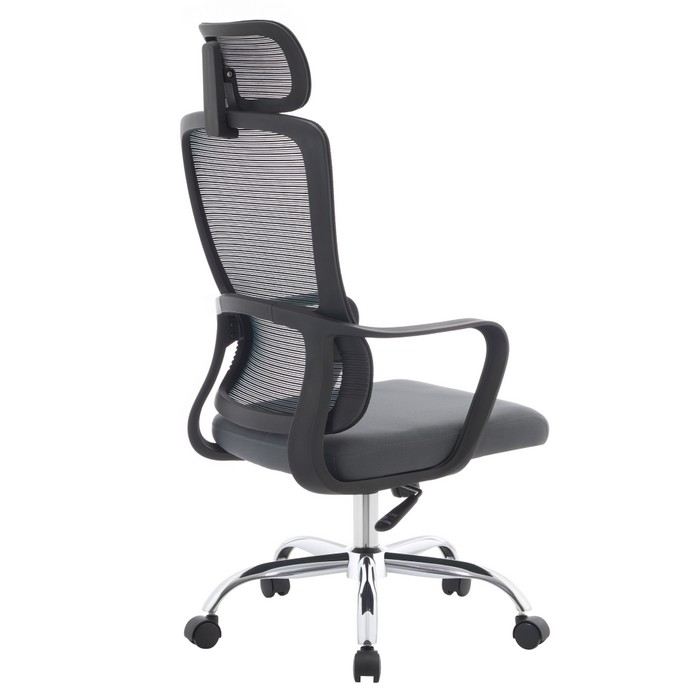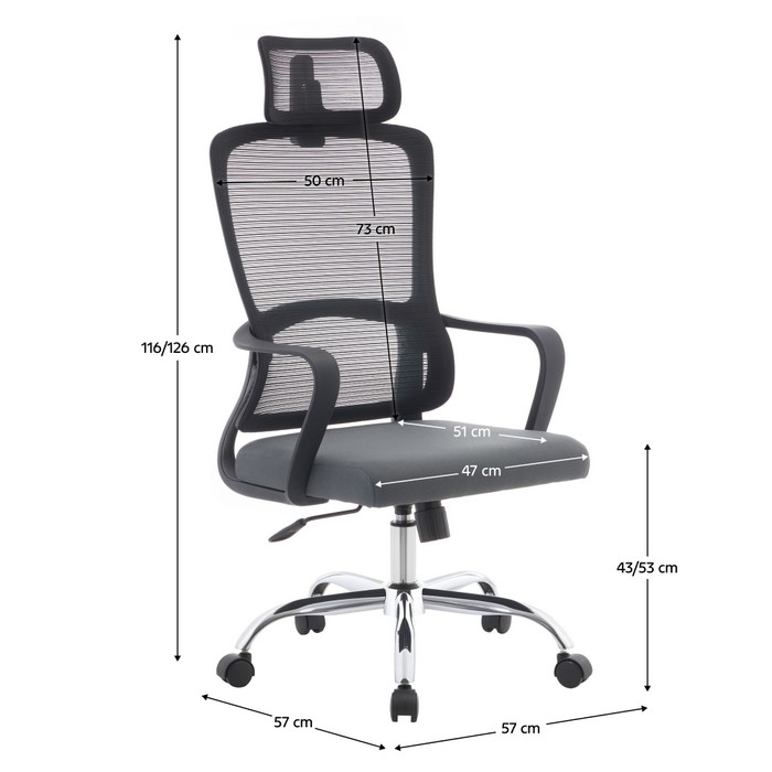 Kancelárske kreslo RANDY spája moderný vzhľad s vysokým komfortom, ktorý oceníte pri každodennej práci v kancelárii aj doma. Pri rozmeroch (ŠxHxV): 57x57x116-126 cm pôsobí kompaktne, no zároveň poskytuje dostatočný priestor na pohodlné sedenie. Výšku sedu je možné nastaviť v rozmedzí 43 až 53 cm, takže sa jednoducho prispôsobí vašim individuálnym potrebám. Vysoké operadlo so šírkou 50 cm a výškou 73 cm je doplnené o opierku hlavy, ktorá podporuje správne držanie tela a poskytuje oporu krčnej chrbtici. Chrbtová časť je vyhotovená z priedušnej sieťoviny s oderuodolnosťou 90 000 cyklov podľa testu Martindale, čo zabezpečuje výbornú cirkuláciu vzduchu. Sedák so šírkou 47 cm a hĺbkou 51 cm je čalúnený príjemnou látkou s oderuodolnosťou 80 000 cyklov, takže zvládne aj intenzívne používanie. Kreslo je otočné a vybavené mechanizmom hojdania pre väčšie pohodlie počas pracovného dňa. Stabilitu zabezpečuje pevná kovová podstava v chrómovom prevedení, doplnená o univerzálne kolieska vhodné na mäkké aj tvrdé podlahy. Plastové opierky na ruky prispievajú k správnej a pohodlnej polohe paží. Kombinácia čiernej, sivej a chrómových prvkov pôsobí nadčasovo a elegantne. Prirodzene zapadne do kancelárie, pracovne aj domáceho pracovného priestoru. Nosnosť kresla je až 150 kg a dodáva sa v demonte.