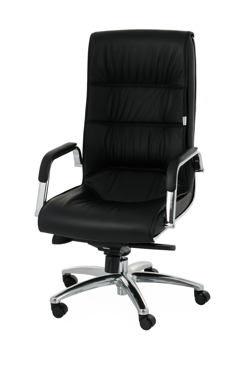 Hľadáte kancelárske kreslo, ktoré bude pohodlné, šetrné k Vašej chrbtici, príjemné aj počas dlhých hodín v práci a zároveň bude dokonale dizajnovo spracované? Práve ste ho našli. Kancelárske kreslo s podrúčkami NAXIM, bude tou správnou voľbou pre Vás. Profilované operadlo s vodorovným prešívaním dodá maximálne pohodlie a udržiava Vaše telo v príjemnej polohe. Predná časť kresla je odetá do príjemnej, vysokokvalitnej zrnitej kože čiernej farby. Zadná časť kresla, s ktorou neprichádzate do kontaktu, je odetá do príjemnej ekokože, s rovnakou farbou a štruktúrou ako predná časť. Bonusom je vybavenie kresla vysokokvalitným pohybovým mechanizmom Multiblock, ktorý umožní hojdanie a zablokovanie kresla vo Vami zvolenej polohe. Pokiaľ kreslo nie je zablokované operadlo poskytuje stálu oporu pre Váš chrbát a prispôsobí sa Vašej hmotnosti. Sila odporu, ktorú kladie kreslo pri hojdaní je nastaviteľná. Vďaka funkcii Anti-Shock Vám operadlo pri uvoľnení zablokovania neudrie do chrbta. Výška sedadla je nastaviteľná pomocou pneumatického zdvihu, ktorý je ovládaný páčkou umiestnenou pod sedadlom. Chrómované podrúčky kresla sú doplnené o kožené podložky, ktoré zabezpečia ešte väčšie pohodlie a sú vo farbe kresla. Kvalitná základňa kresla je vyrobená z pevného lešteného hliníka, chrómovej farby, bez zváraných prvkov. Je ukončená piatimi mäkkými kolieskami, ktoré sú odolné voči poškriabaniu drevených povrchov. Rozmery stoličky sú (ŠxHxV): 69x69x115-121 cm, výška sedu je 45-53 m, šírka sedu je 51 cm a hĺbka sedu je 46 cm. Dodávané je v demonte a jeho maximálna nosnosť je do 150 kg.
