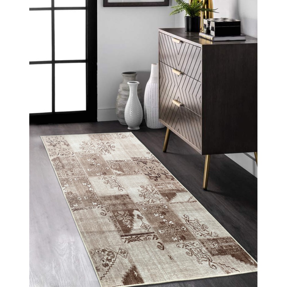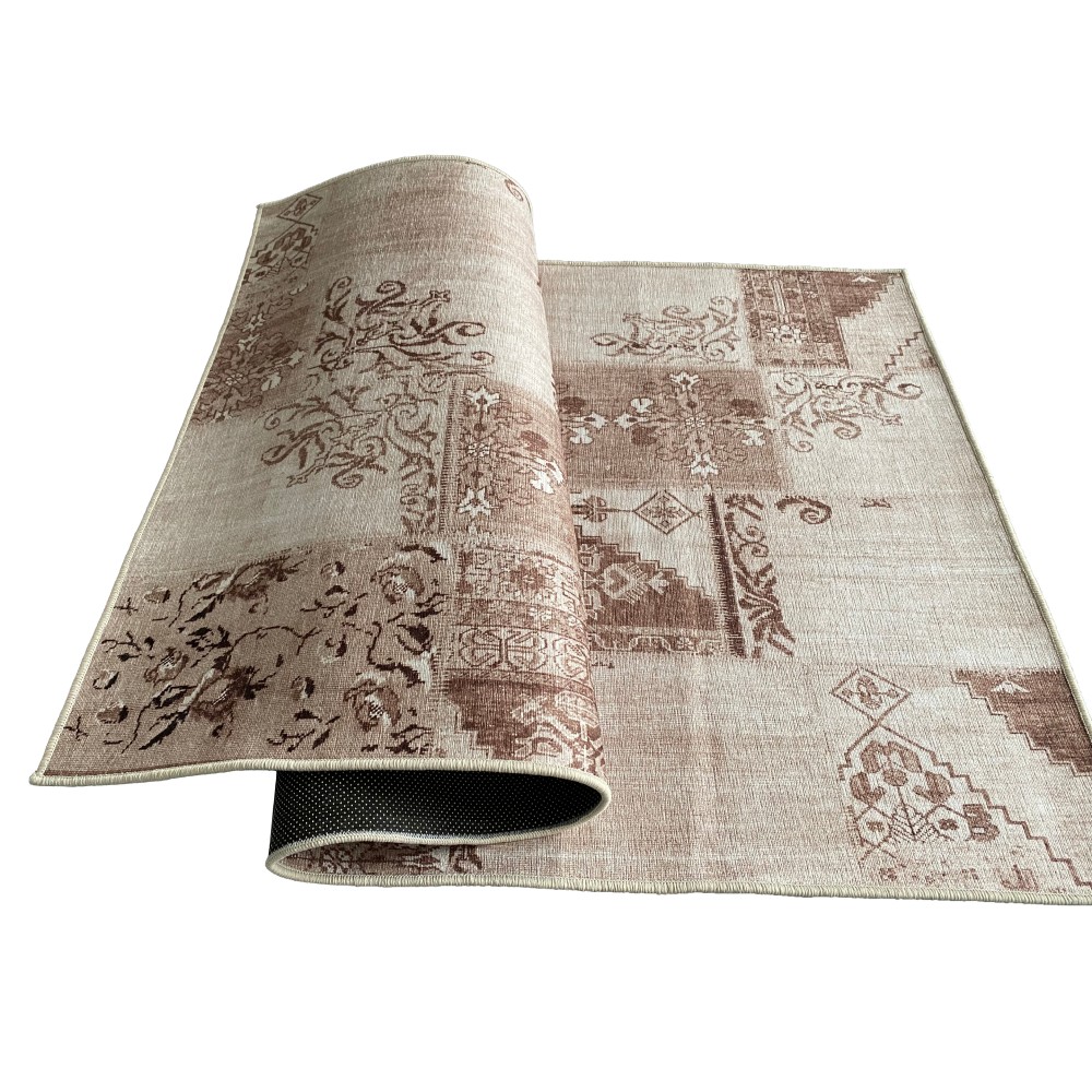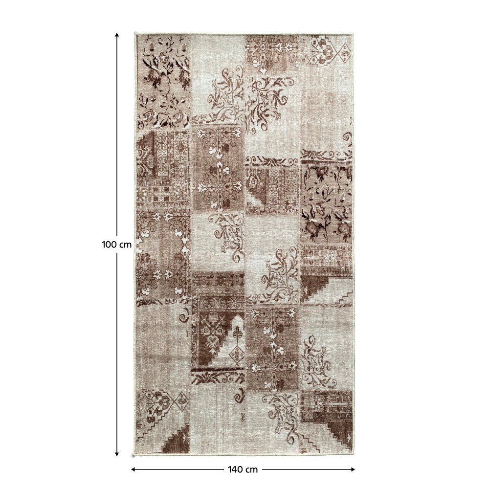 Koberec PELTON TYP 2 predstavuje praktický a elegantný doplnok vhodný do každej domácnosti. Má jemný vzor v zemitých odtieňoch béžovej, hnedej a sivej, vďaka čomu pôsobí vkusne a ľahko sa kombinuje s rôznym nábytkom. Svoje miesto si nájde v obývačke, spálni, predsieni aj pracovni. Je vyrobený zo 100 % polyesteru, čo zaručuje mäkkosť, príjemný pocit na dotyk a jednoduchú údržbu. Spodná protišmyková vrstva zabezpečuje stabilitu a bezpečné používanie pri každodennom pohybe. Koberec má rozmery (ŠxD): 100x140 cm, hrúbku 0,7 cm, gramáž 280 g/m2 a hmotnosť 1,43 kg. Nie je vhodný na pranie v práčke, bielenie ani chemické čistenie, nemal by sa sušiť v sušičke a neodporúča sa ani žehlenie.