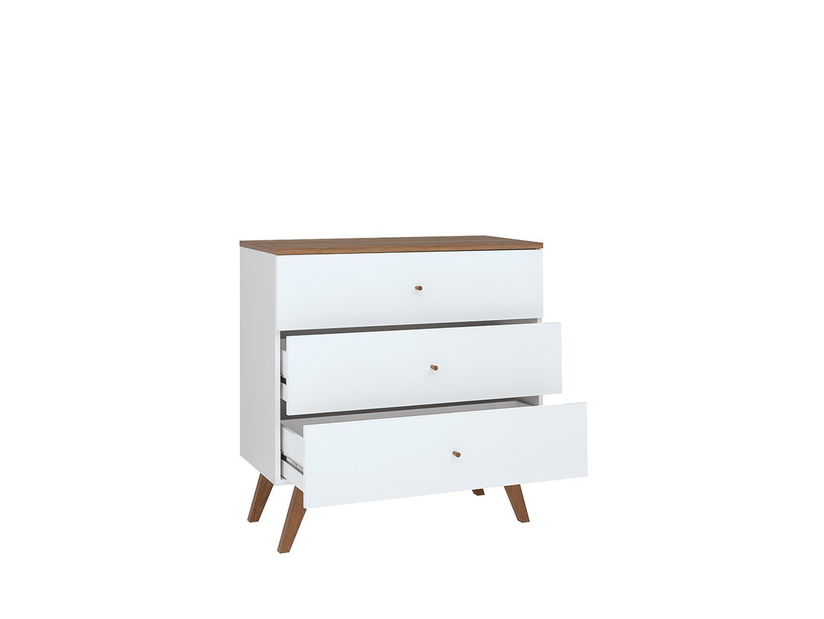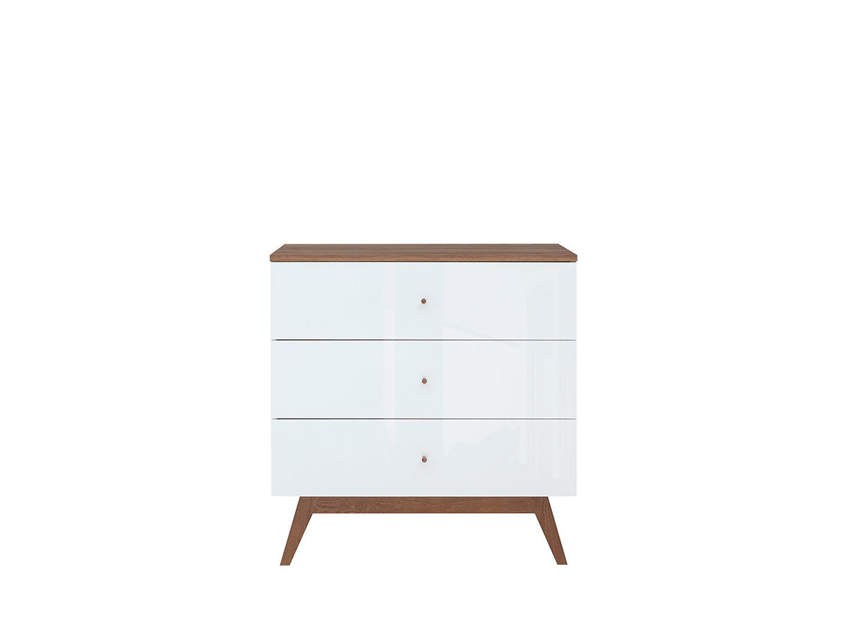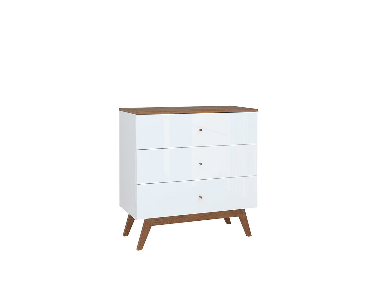 Komoda Heda KOM3S - biela / smrekovec sibiu zlatý / biely lesk