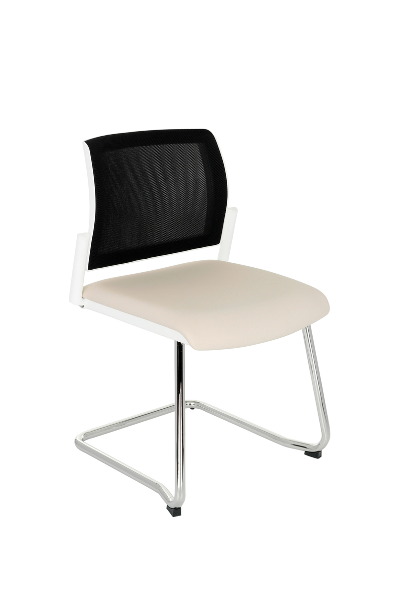 Konferenčná stolička Steny V Net - krémová / čierna / biela / chróm