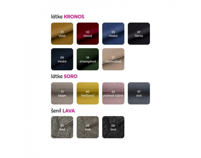 Možnosť objednať dvojkreslo Cuba aj v: mikrofáze za cenu 159 Eur ekokoži alebo v látke Lava v cene 189 Eur, cena v látke Savana alebo v látke Soro 179 Eur a v látke Kronos 179 Eur. Pri individuálnej objednávke je potrebné zaplatiť 20% zálohu z danej sumy. Po uhradení zálohy bude Vaša požiadavka zadaná do výroby. Doba dodania 8-10 týždňov.