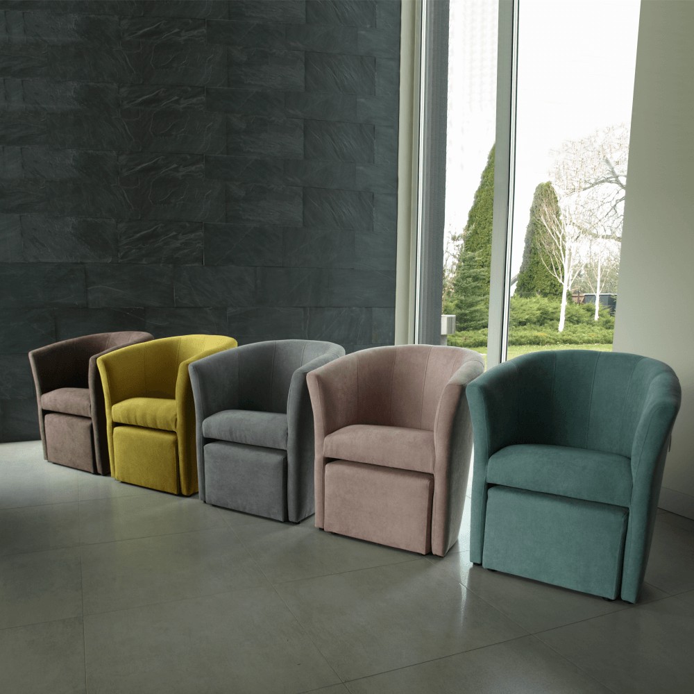 Doprajte si konečne zaslúžený oddych v konferenčnom kresle s taburetkou ROSE. Usaďte sa v tomto komfortnom kresle, nohy si vyložte na taburetku a vychutnávajte si sladké chvíle oddychu. Rozmery kresla sú (ŠxHxV): 65x60x77 cm, s výškou aj hĺbkou sedu 45 cm. Rozmery taburetky sú (ŠxHxV): 47x38x30 cm. Sú celočalúnené látkou Soro vo farebnom prevedení sivá 70. Hmotnosť je 17 kg, nosnosť až 120 kg. Taburetka je navyše uspôsobená tak, aby ste ju mohli kedykoľvek zasunúť pod kreslo. Nebude teda zasahovať do priestoru, ale vždy bude pripravená poslúžiť Vám. Rose je spojením toho najlepšieho. Dodáva sa v demonte.