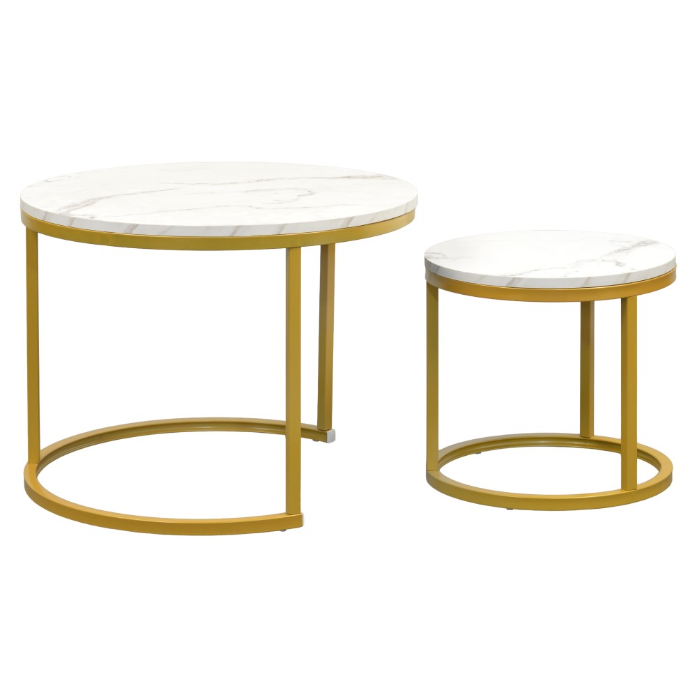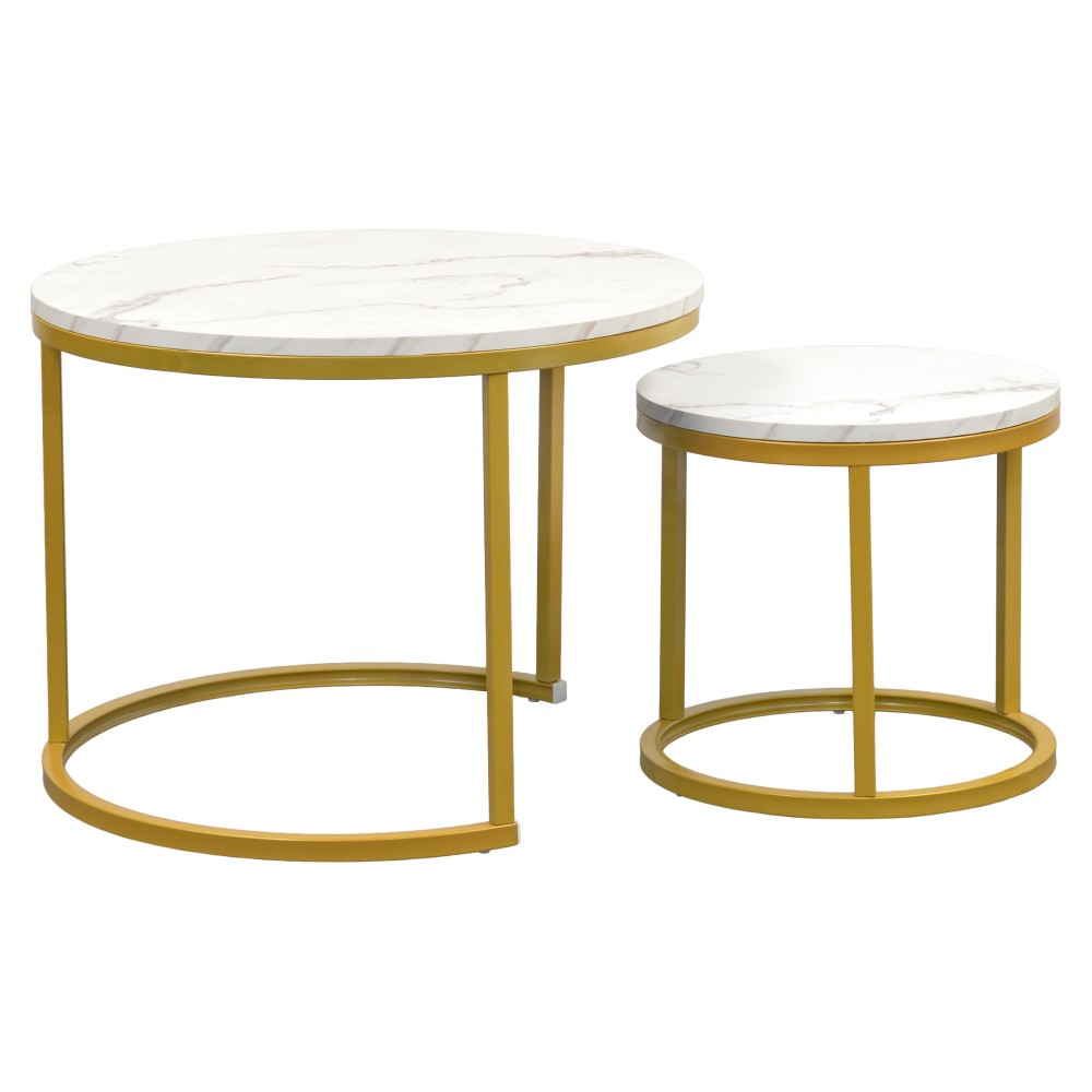 Konferenčný stolík (2 ks) Damon - zlatá / imitácia mramoru