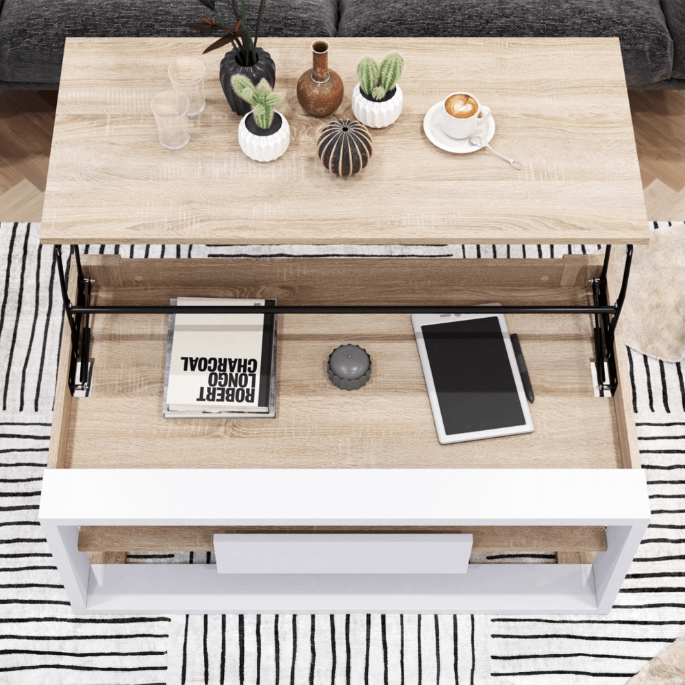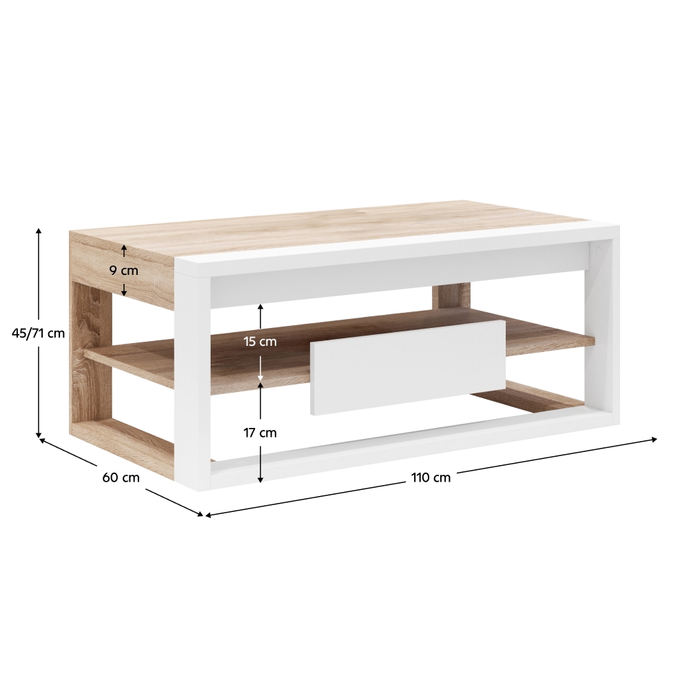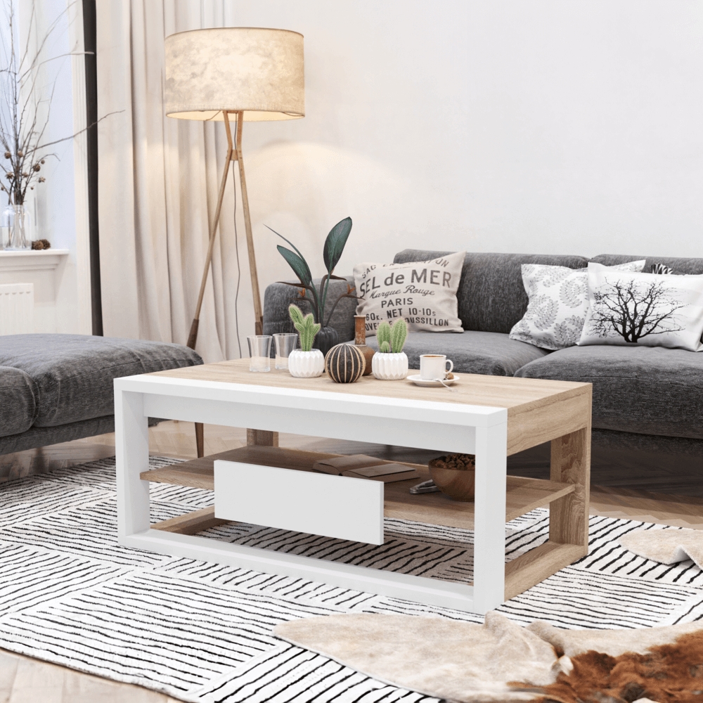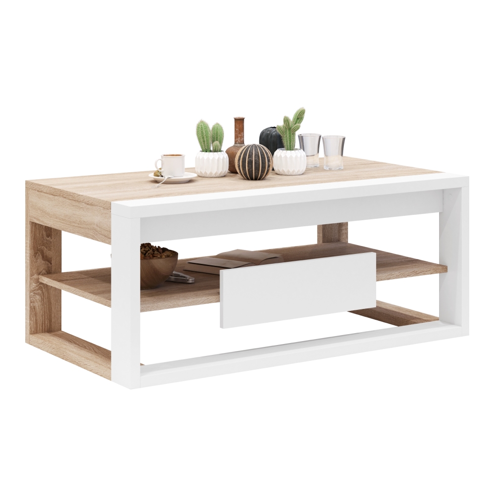 Konferenčný stolík Flame - dub sonoma / biela