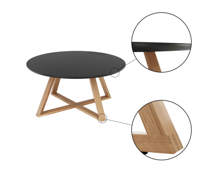 Stolík je vyrobený z kvalitného MDF materiálu v kombinácii s dubovým drevom, čo mu dodáva pevnosť a stabilitu. S maximálnym zaťažením 30 kg poskytuje dostatok priestoru na umiestnenie dekorácií, kníh či občerstvenia pri stretnutiach s priateľmi alebo rodinou. Rozmery stolíka sú 80 cm na šírku aj hĺbku a výška 39 cm, čo ho robí praktickým riešením pre menšie aj väčšie miestnosti.