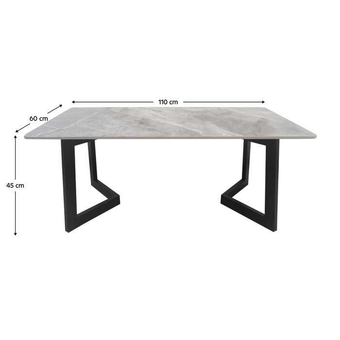Konferenčný stolík SOFIAN je premyslený a štýlový dizajnový kúsok, ktorý dokáže povýšiť každý interiér na výnimočný priestor. Vrchná doska v dekóre sivého mramoru s jemným žilkovaním pôsobí luxusne už na prvý pohľad, pričom originálne tvarované čierne kovové nohy dodávajú stolíku výrazný charakter. Napriek svojmu robustnému vzhľadu pôsobí vzdušne, vďaka čomu sa výborne hodí do moderných aj industriálnych interiérov. Stolík Sofian vnáša do miestnosti osobitý štýl a necháva vyniknúť precízne spracovanie aj detaily jeho elegantného prevedenia. Je vyrobený z kombinácie kamenného plátu a kovu v farebnom prevedení sivý mramor a čierna. Rozmery stolíka sú (ŠxHxV): 110x60x45 cm, pričom hrúbka vrchnej dosky je 1 cm. Nosnosť stolíka dosahuje 35 kg. Ide o originálny, moderný a štýlový kúsok, ktorý sa dodáva v demontovanom stave.