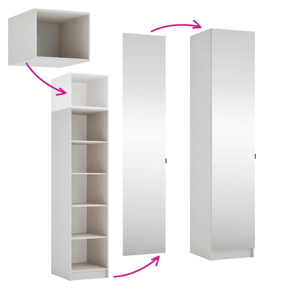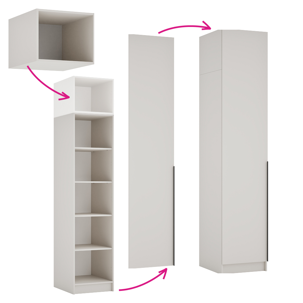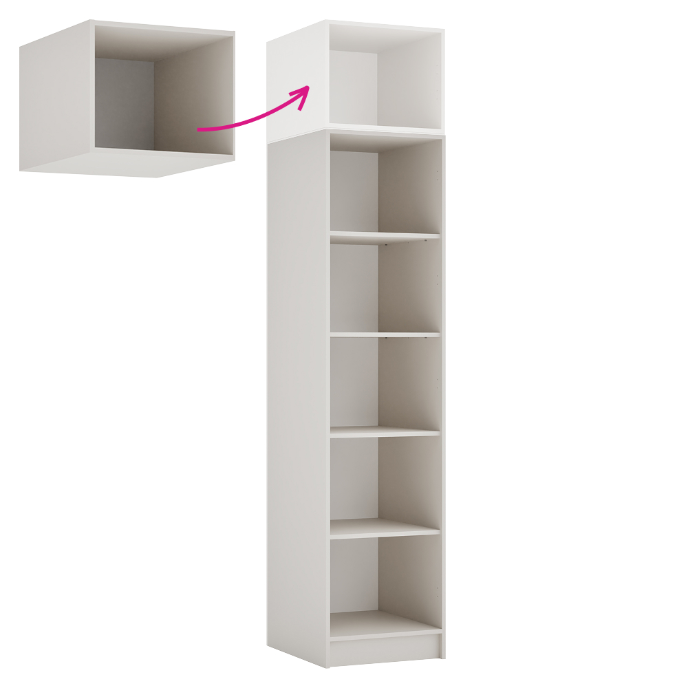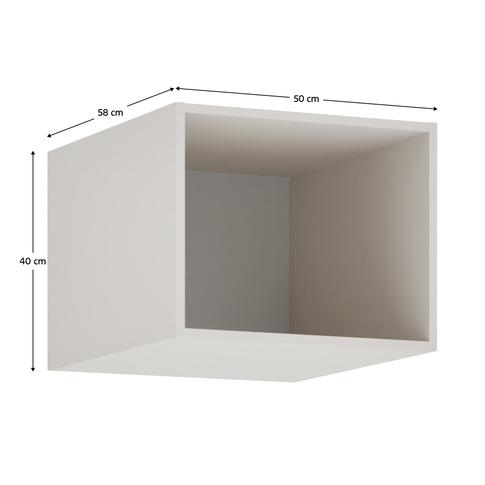 Nadstavec skrine KREO 50 je ideálnym riešením na praktické využitie rohového priestoru a rozšírenie vašej zostavy. Vďaka rozmerom (ŠxHxV): 50x58x40 cm poskytuje kompaktný úložný priestor s nosnosťou do 5 kg. Je vyrobený z laminovanej DTD s hrúbkou 1,6 cm, doplnenej o odolné ABS hrany (0,045 cm), v modernom farebnom prevedení kašmír. Otvorený nadstavec môžete doplniť o vysoké dvierka Kreo (plné alebo so zrkadlom) pre jednotný a elegantný vzhľad. Nadstavec je určený ku korpusu Kreo 50, pričom sa dodáva bez skrine a bez dvierok. Predvŕtané otvory umožňujú jednoduchú montáž pántov na oboch stranách. Možná je aj kombinácia s dekorom dub artisan. Pre bezpečné používanie odporúčame pripevnenie k stene. Produkt je dodávaný v demonte.