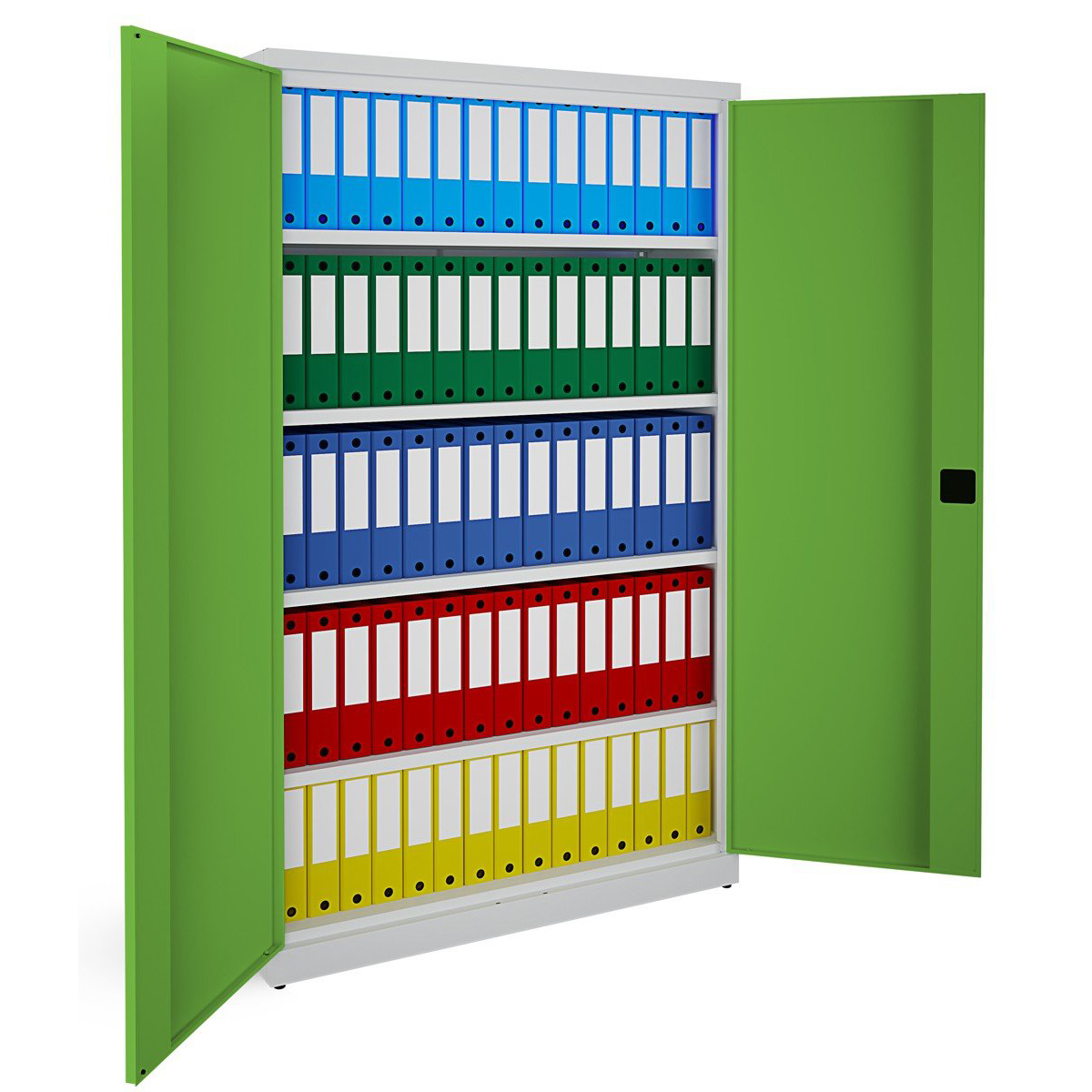 Kovová kancelárska skriňa s dvojkrídlovými dverami SB 1200 - svetlosivá / zelená