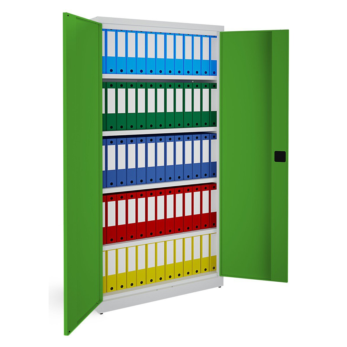 Kovová kancelárska skriňa s nastaviteľnými policami SB 1000 - svetlosivá / zelená