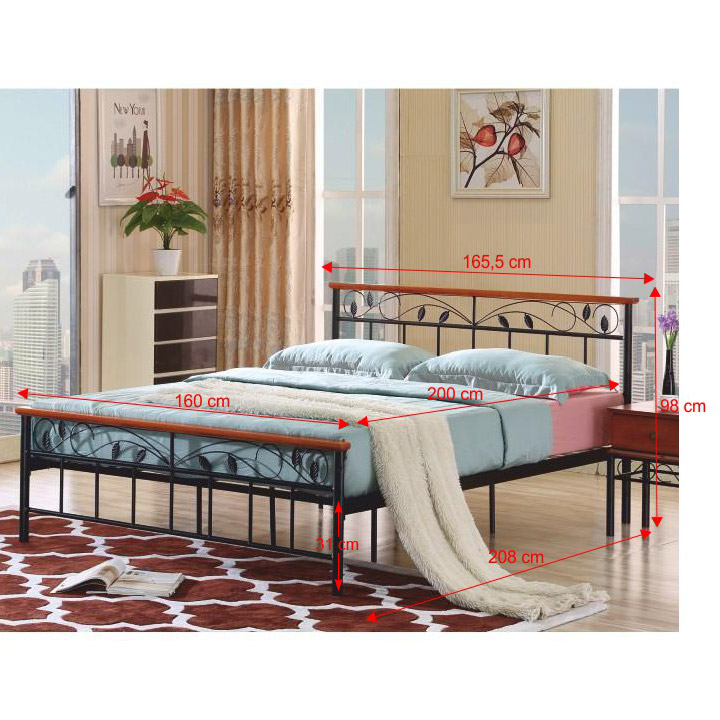 Kovová manželská posteľ s roštom Morena 160 - čierny kov / čerešňa