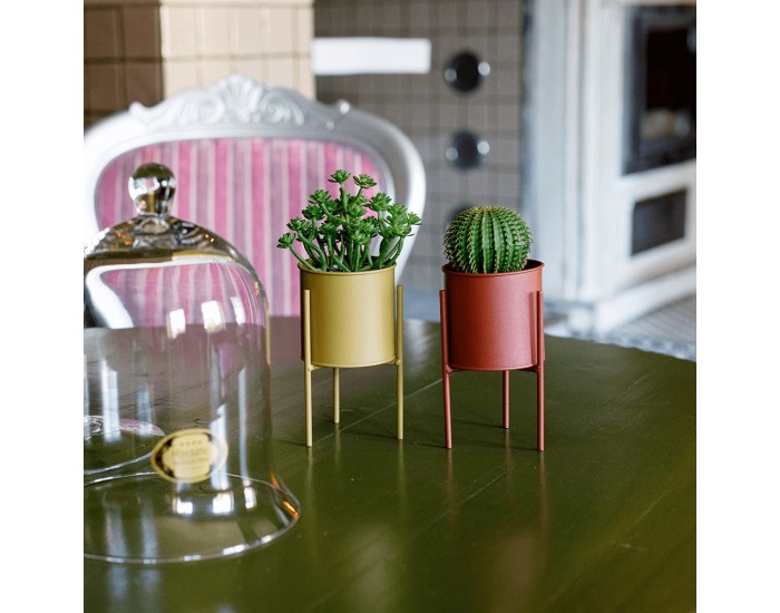Kvetináče sú vyrobené z kvalitného kovu, čo zaručuje ich dlhú životnosť a odolnosť. Ich okrúhly tvar a svetlá farebnosť sa ľahko začlenia do rôznych dizajnových konceptov, pričom zachovávajú moderný vzhľad. S rozmermi 10 cm na šírku, 9,5 cm na hĺbku a 17,3 cm na výšku sú ideálne pre menšie rastliny alebo dekoratívne aranžmány.