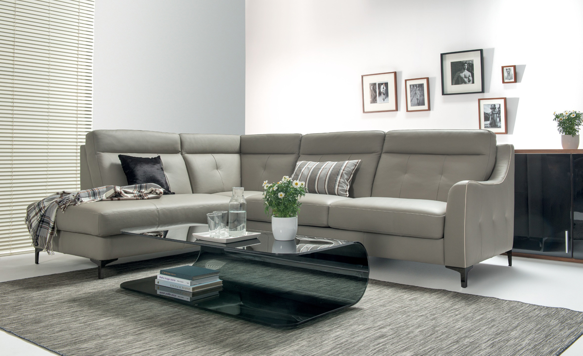 Kožená rohová sedačka s rozkladom Camomilla L - sivá / čierna