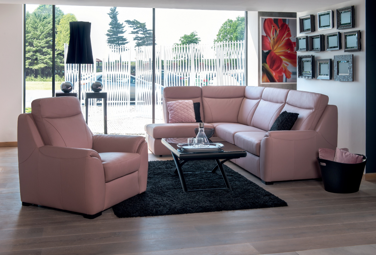 Kožená rohová sedačka s rozkladom Clivia L - ružová