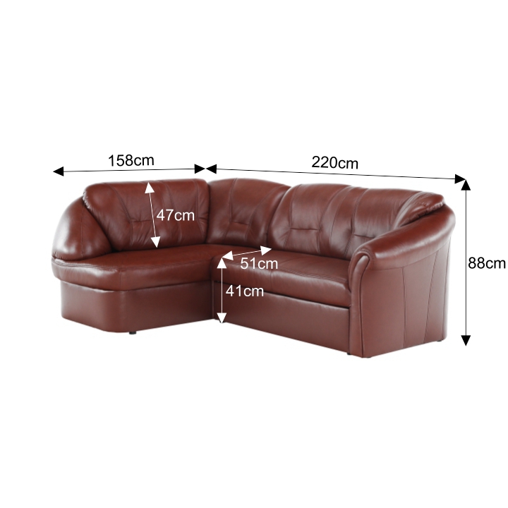 Kožená rohová sedačka s rozkladom Laredo L - hnedočervená