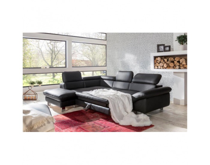 Kožená rohová sedačka s rozkladom River L - čierna