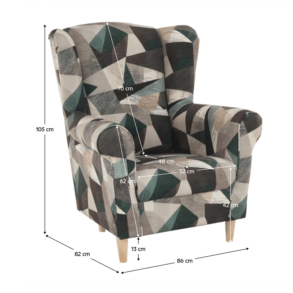 Kreslo-ušiak CHARLOT - tomu sa hovorí relax! Zvaľte sa do tohto pohodlného kresla a započúvajte sa do hudby, pozrite si obľúbený film či prečítajte si zopár stránok knihy. Je len na Vás, ako relaxujete, s týmto kreslom sa Váš pocit oddychu ešte umocní. V prevedení látky Holm so zaujímavým hnedozeleným vzorom bude vynikať v každej miestnosti. Drevené nožičky držia toto mohutné kreslo s rozmermi (ŠxHxV): 86x82x105 cm. O Vaše pohodlie a komfort sa postarajú najmä výška chrbtovej opierky vo výške 70 cm a výška opierky na ruky 62 cm. Rozmaznávajte sa a užívajte si veľmi pohodlné a príjemné sedenie.