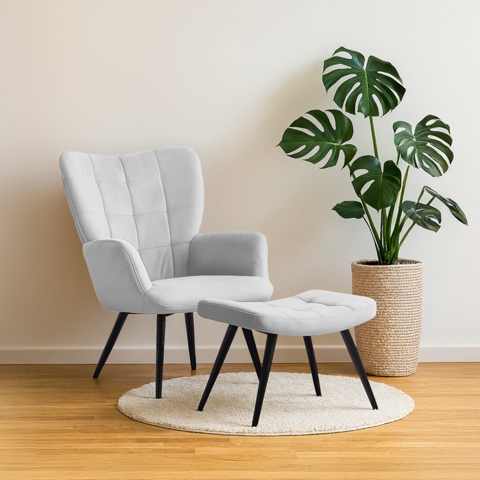 Kreslo s podnožou Haben - svetlosivá (Velvet) / čierna