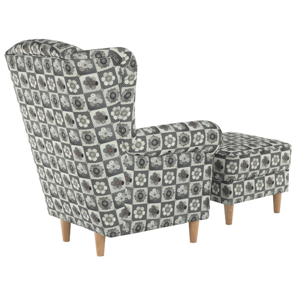 Kreslo (ušiak) s taburetkou Astrid - vzor patchwork N1
