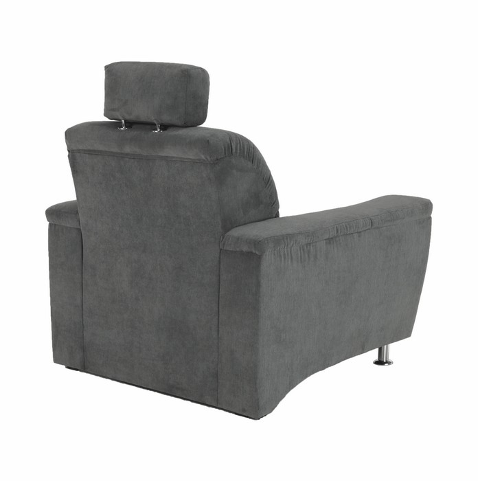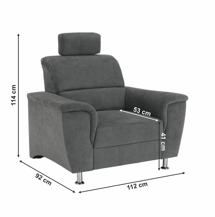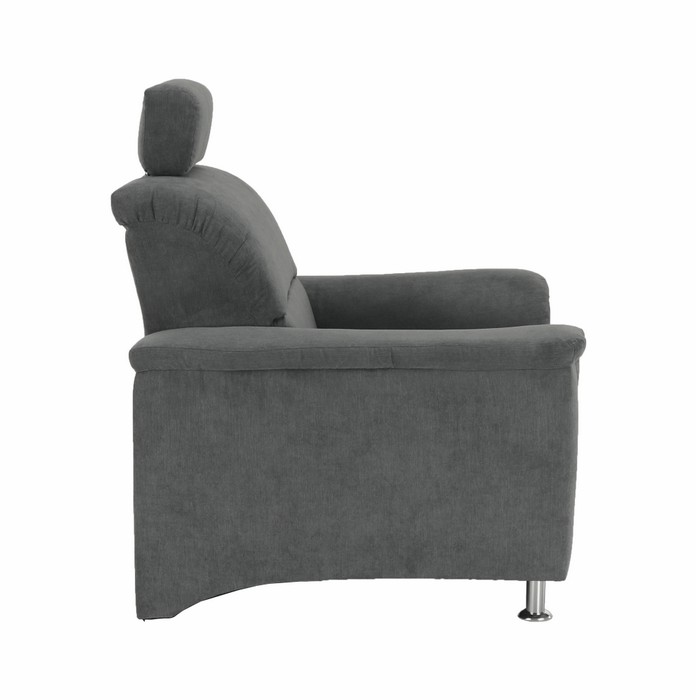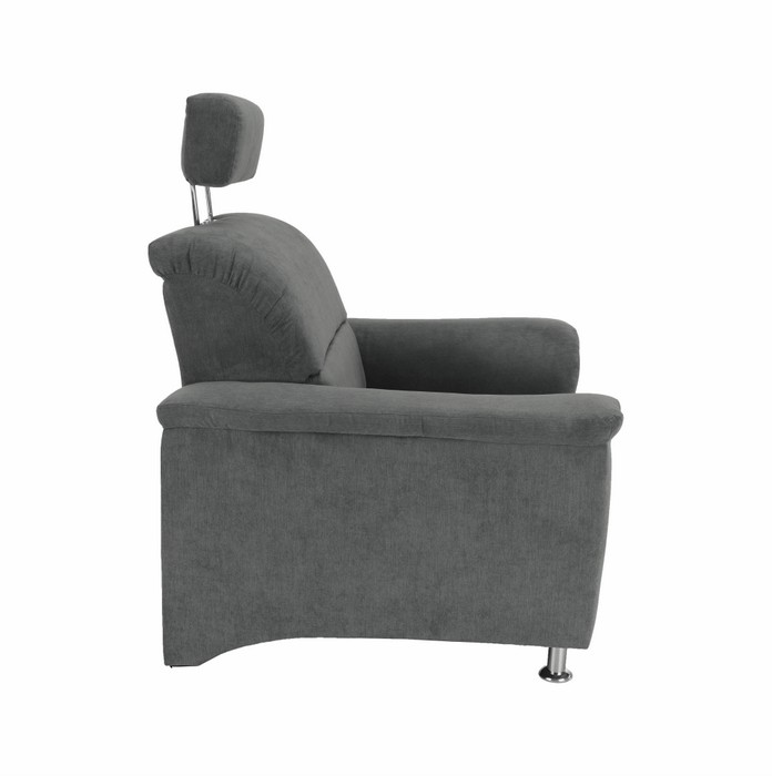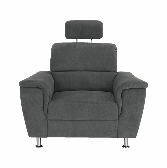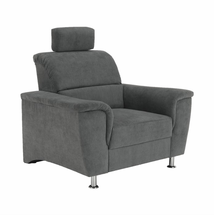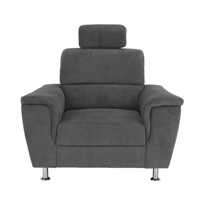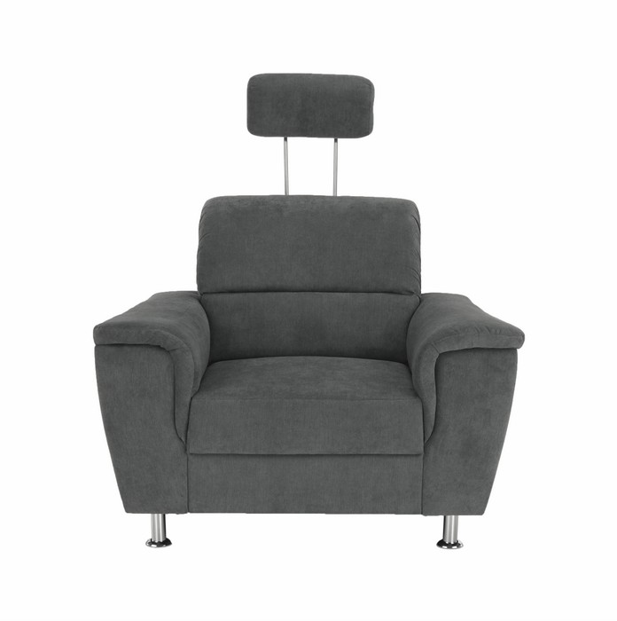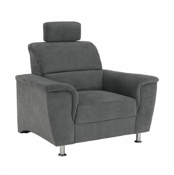Elegantné kreslo SANTIAGO je vhodné umiestniť do moderne zariadenej obývacej izby. Kreslo ponúka stredne tvrdé sedenie. Je čalúnené sivou látkou (Matrix 17). Prednosťou kresla je polohovateľná opierka hlavy, ktorú je možné nakloniť dopredu alebo dozadu podľa potreby. Kreslo je doplnené kovovými nožičkami vo farbe chrómu. Výška sedu je 41 a hĺbka sedu je 53 cm.