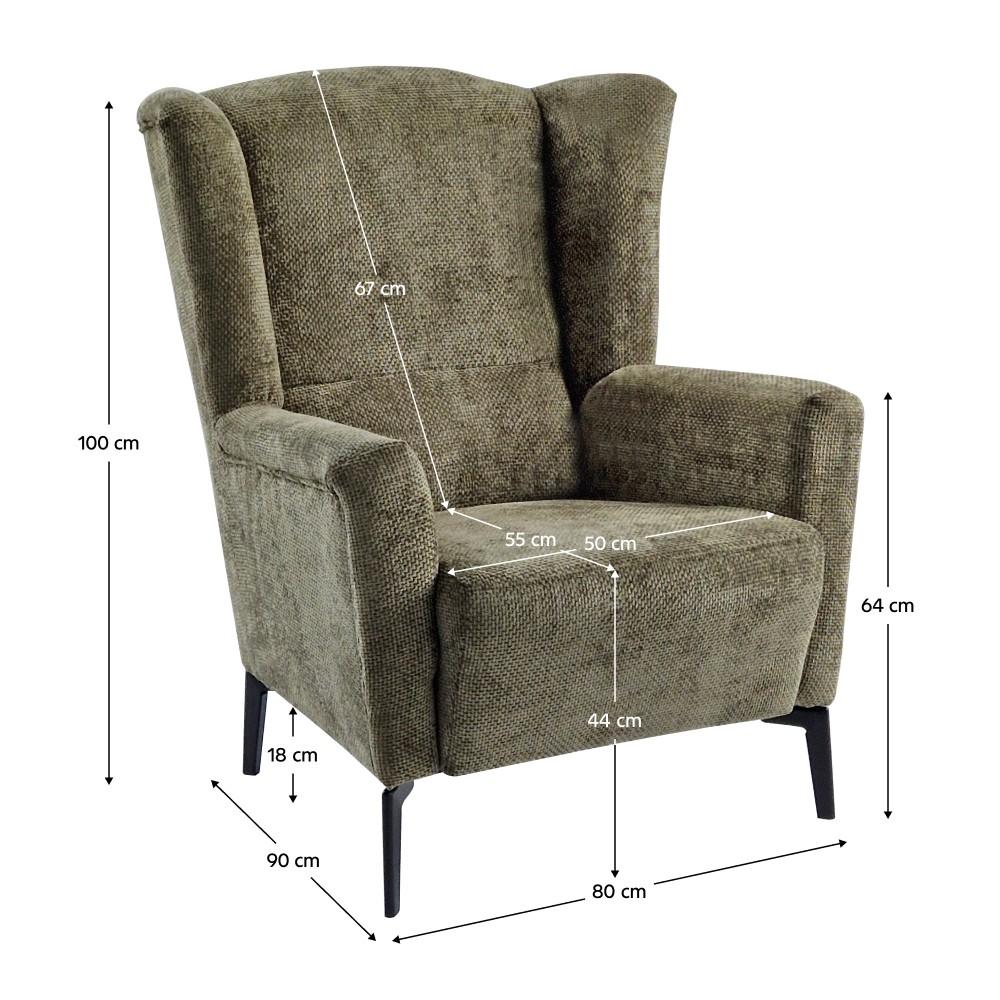 Doprajte si chvíle dokonalého oddychu s kreslom ALURA, ktoré patrí medzi obľúbené ušiaky a vyniká pohodlným sedením aj moderným dizajnom. Vysoká tvarovaná opierka chrbta poskytuje skvelú podporu, predchádza bolestiam chrbtice a krku a zároveň zaručuje zdravé držanie tela. Opierky rúk uľavia unaveným rukám a bočné časti operadla umožnia pohodlne si oprieť hlavu. Jadro tvorí kombinácia pružiny falista a PUR peny T30, ktorá zabezpečuje komfort a odolnosť. Kreslo je čalúnené látkou Eden 12 v elegantnej olivovej farbe s vysokou oderuodolnosťou (90 000 cyklov podľa testu Martindale). Stabilitu i moderný vzhľad dotvárajú čierne kovové nožičky, ktoré zároveň dodávajú pevnosť celej konštrukcii. Rozmery kresla sú (ŠxHxV): 80x90x100 cm, výška sedu 44 cm, hĺbka sedu 55 cm a šírka sedacej časti 50 cm. Vysoká chrbtová opierka má 67 cm, výška po opierku rúk je 64 cm a spodný priestor od podlahy má 18 cm. Nosnosť kresla je 120 kg. S kreslom Alura si doma vytvoríte príjemné miesto na relax, ktoré spojí pohodlie, štýl a praktickosť.