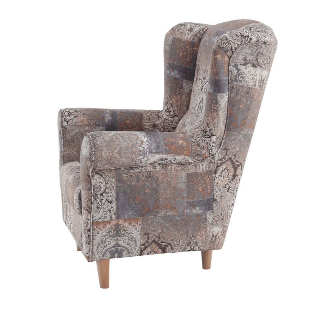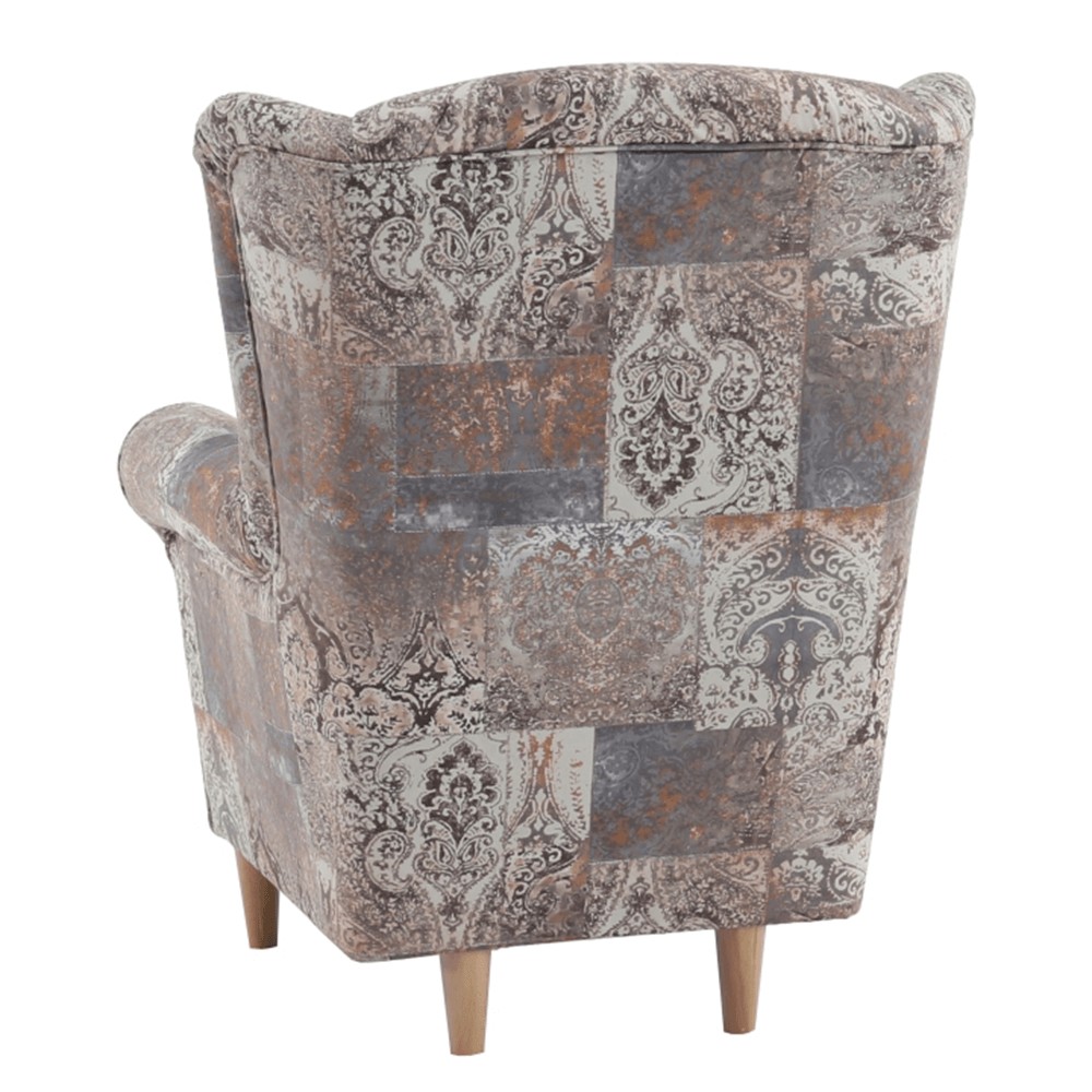 Kreslo (ušiak) Charlot - buk / hnedý vzor (Vintage 1026)