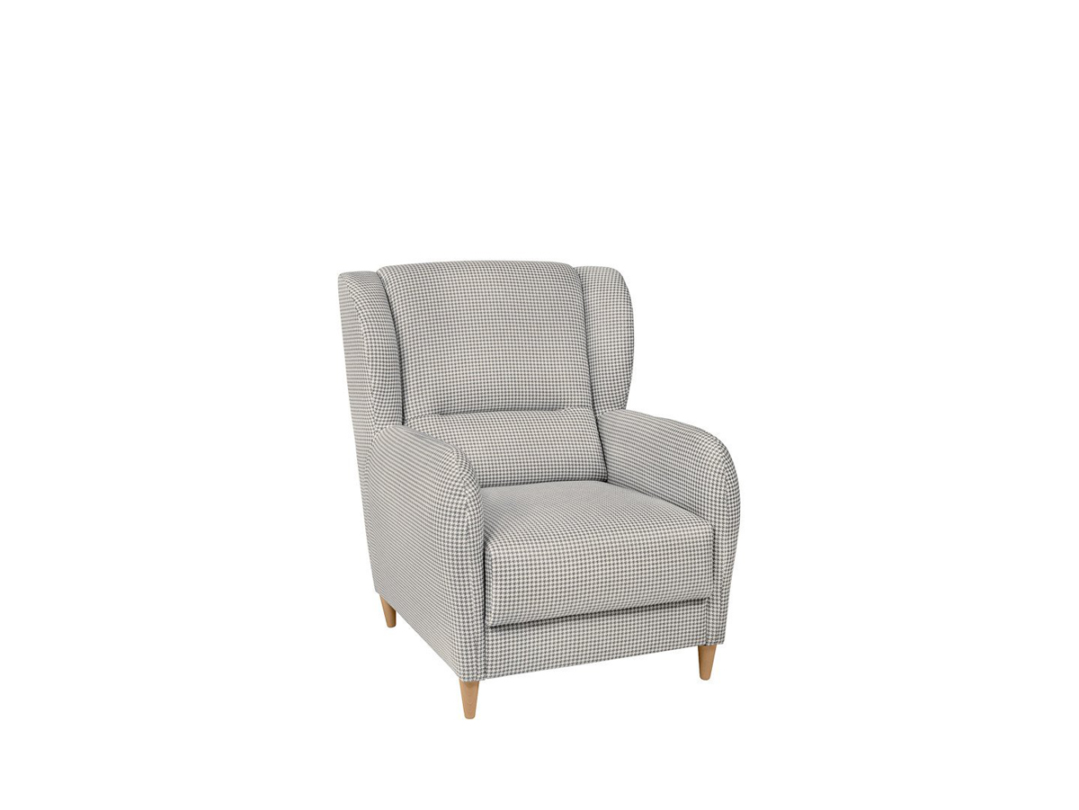 Kreslo (ušiak) Pasos - sivý vzor / drevo (TX002)