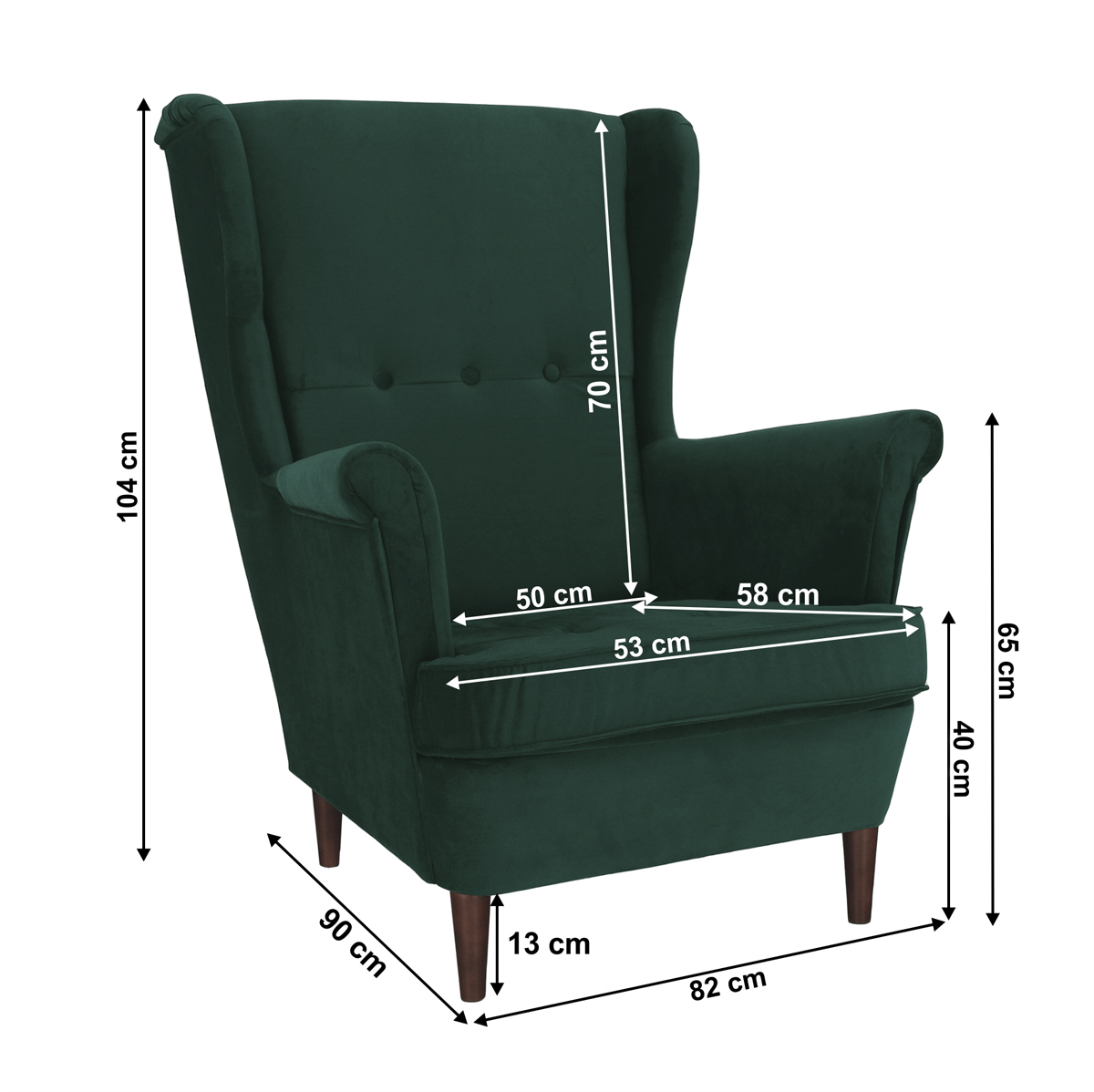 Kreslo (ušiak) Rufino New - tmavozelená / orech