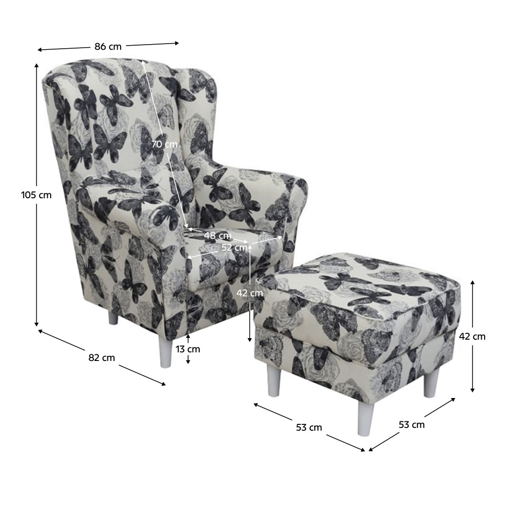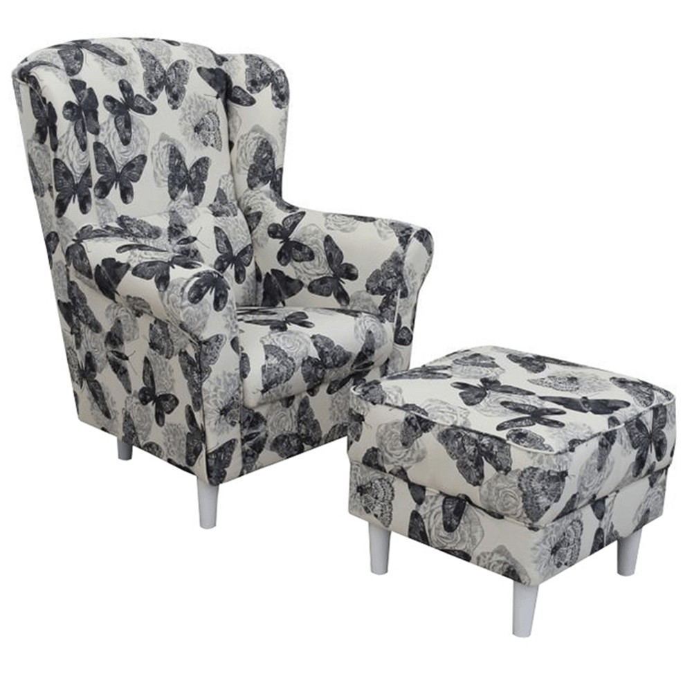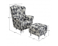 Kreslo (ušiak) s taburetkou Astrid - butterfly 1