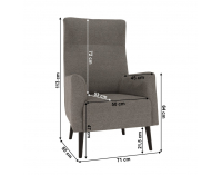 Doprajte si zaslúžený relax v náručí komfortného kresla SAMY, ktoré vám ponúkne skutočný zážitok zo sedenia. Toto elegantné kreslo typu ušiak je navrhnuté s dôrazom na pohodlie - disponuje vysokým operadlom (72 cm), bočnými opierkami hlavy a komfortnými opierkami na ruky (64 cm od zeme, hĺbka 45 cm). Vďaka týmto prvkom vám poskytne dokonalú oporu pri čítaní, odpočinku či sledovaní televízie. Kreslo je celočalúnené kvalitnou látkou Matana v sivej farbe, ktorá je nielen príjemná na dotyk, ale aj odolná voči oderu - až 57 000 oderov podľa testu Martindale. Stabilitu zabezpečujú drevené nohy v čiernom dekore, ktoré zároveň dodávajú kreslu prirodzený vzhľad. Svetlá výška 21,5 cm pod kreslom oceníte aj pri upratovaní. Rozmery kresla (ŠxHxV): 71x85x113 cm, spolu s šírkou sedu 50 cm, hĺbkou sedu 53 cm a výškou sedu 47 cm, poskytujú dostatok priestoru pre pohodlné usadenie. Jadro sedáka tvorí kombinácia pružín Falista a peny T25, ktorá zabezpečuje optimálnu oporu aj pri dlhšom sedení. Nosnosť kresla je 120 kg. Kreslo Samy je dodávané v demonte, pripravené na jednoduchú montáž. Skombinujte ho s taburetom Samy a vytvorte si dokonalé miesto na relax v štýle, ktorý si zaslúžite.