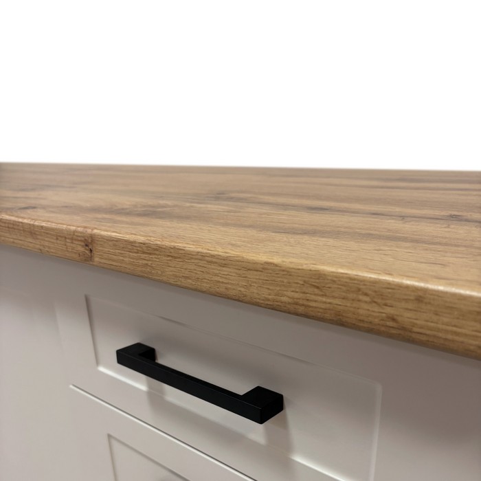 Kuchynská zostava ELGIA premení každodenné varenie na príjemný zážitok v pohodlnom, modernom a elegantnom štýle. Skrinky v odtieni kašmír pôsobia jemne a nadčasovo, pričom čierne plastové úchytky im dodávajú moderný kontrast a uľahčujú otváranie dvierok. Pracovná doska v dekore dub wotan s hrúbkou 2,8 cm prináša do priestoru nádych prírody a zaujímavý štýlový kontrast. Korpusy kuchyne sú vyrobené z laminovanej DTD, zatiaľ čo dvierka z MDF fóliovanej, čo zaručuje odolnosť a jednoduchú údržbu. Horná zostava s celkovou šírkou 260 cm pozostáva zo skriniek G80 s rozmermi (ŠxHxV): 80x29x58 cm, G40-P (ŠxHxV): 40×29×58 cm, G80W (ŠxHxV): 80×29×58 cm a G60-OK (ŠxHxV): 60×29×40,5 cm. Spodná časť so šírkou 200 cm obsahuje skrinky D80ZL s rozmermi (ŠxHxV): 80×45×82 cm, D40SZ (ŠxHxV): 40×45×82 cm a D80 (ŠxHxV): 80x45x82 cm. Spodné skrinky sú dodávané so spodnou aj bočnou lištou, ktorá zabezpečuje čistý a upravený vzhľad celej linky. Pracovná doska je dodávaná v dvoch častiach s rozmermi (ŠxHxV): 80×60×2,8 cm a rozmermi (ŠxHxV): 40×60×2,8 cm. Drezová skrinka sa dodáva bez pracovnej dosky a drezu, aby ste si ich mohli prispôsobiť podľa vlastných potrieb. Pri montáži je potrebné vyrezať otvor na drez. Kuchyňa Elgia sa dodáva v demonte, bez spotrebičov a dekorácií, s možnosťou zakúpenia drezu. Vďaka prepojeniu funkčnosti, odolných materiálov a elegantného dizajnu si s touto kuchyňou užijete príjemné chvíle pri rýchlych raňajkách aj pri varení rodinných obedov.