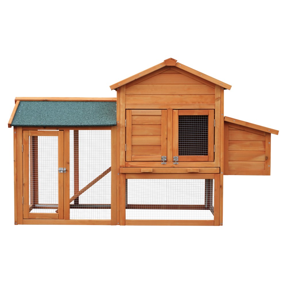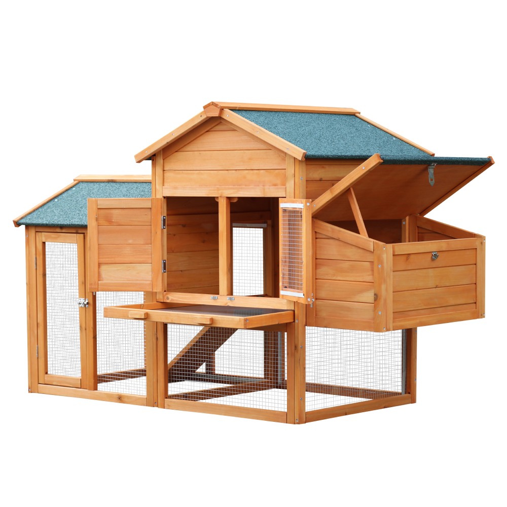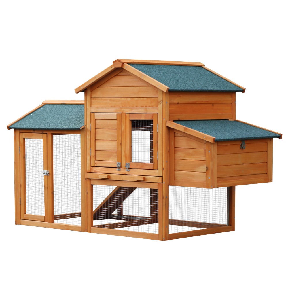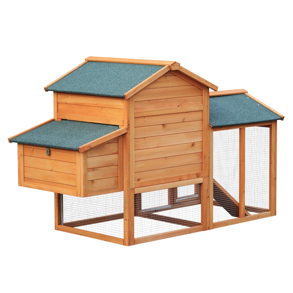 Kurín pre sliepky PIPON predstavuje ideálne riešenie pre každého chovateľa, ktorý hľadá bezpečný, komfortný a funkčný domov pre svoju hydinu či malé zvieratá. Je vyrobený z kvalitného jedľového dreva, doplneného o pevné pletivo z pozinkovanej ocele s hrúbkou 0,6 mm, ktoré poskytuje ochranu pred predátormi. Vďaka streche z asfaltovej plste v zelenej farbe je interiér kurína účinne chránený pred dažďom, vetrom, snehom aj mrazom, čím sa zabezpečujú vhodné podmienky v každom počasí. Kurín ponúka priestranný výbeh, kde majú sliepky dostatok miesta na pohyb, odpočinok aj kŕmenie. Pomocou rampy s rozmermi (ŠxHxV): 54x27x2 cm sa ľahko dostanú na horné poschodie, ktoré slúži ako pokojné miesto na odpočinok a znášanie vajec. Bočný box so sklápacou strechou im zabezpečuje tiché prostredie pre znášanie, pričom prístup k vajíčkam je jednoduchý a pohodlný. Jednoduchú údržbu zabezpečuje výsuvné dno s rozmermi 76x65x2 cm - po jeho vytiahnutí ho stačí vyčistiť a znova zasunúť naspäť. Bezpečnostné prvky ako zasúvacie západky z nerezového železa na dvierkach chránia zvieratá pred neželanými návštevníkmi a udržia ich v bezpečí po celý deň aj noc. Kurín je vhodný nielen pre sliepky (kapacita cca 4 - 5 kurčiat), ale aj pre iné menšie zvieratá, ako sú napríklad králiky. Nepotrebuje kotvenie do zeme, no mal by byť umiestnený na rovnom povrchu. Je dodávaný v demontovanom stave, čo umožňuje jednoduchú manipuláciu a montáž. Kurín Pipon ponúka všetko, čo vaše zvieratá potrebujú - bezpečie, komfort, ochranu pred počasím a praktickosť pre chovateľa. Skvelá voľba pre každého, komu záleží na pohode a zdraví svojich zvierat.