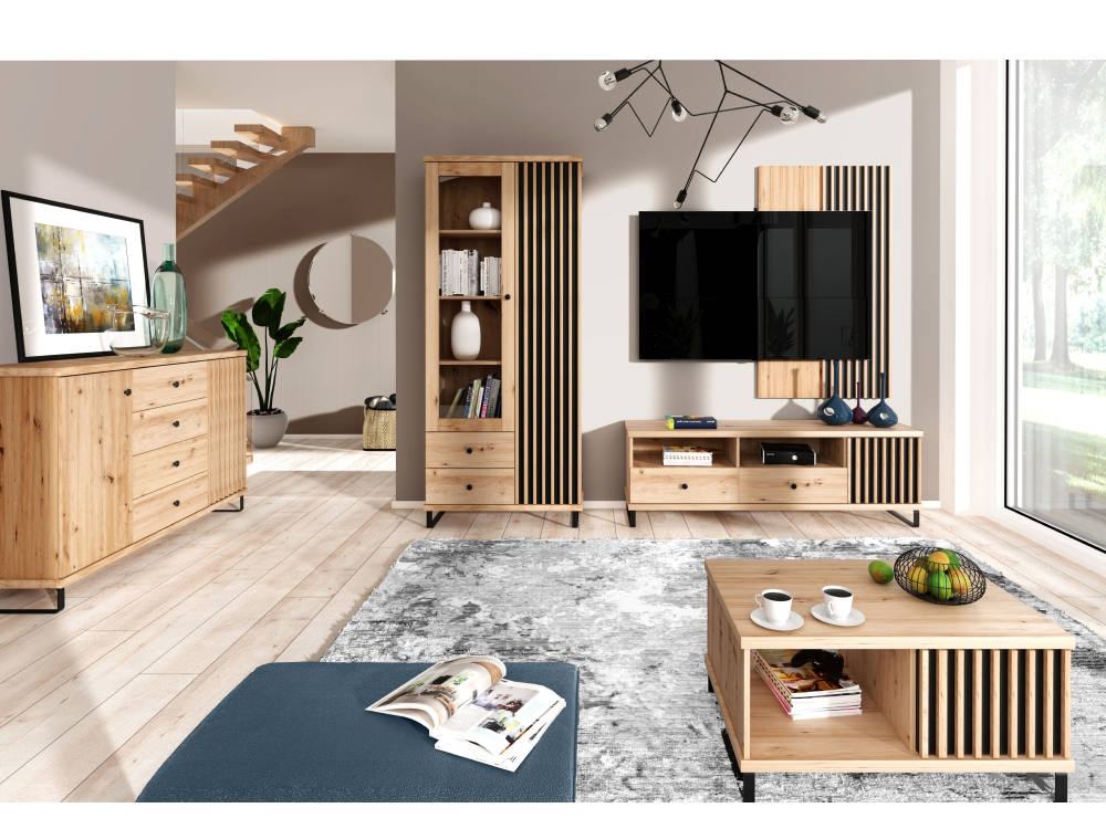 Predstavujeme vám lamelový panel na stenu Koli C-11 v elegantnom prevedení dub artisan a čierna, ktorý je ideálnym riešením pre moderné interiéry. Tento panel od značky KONDELA je vyrobený z kvalitného aglomerovaného materiálu, konkrétne laminovanej DTD, čo zaručuje jeho dlhú životnosť a odolnosť.