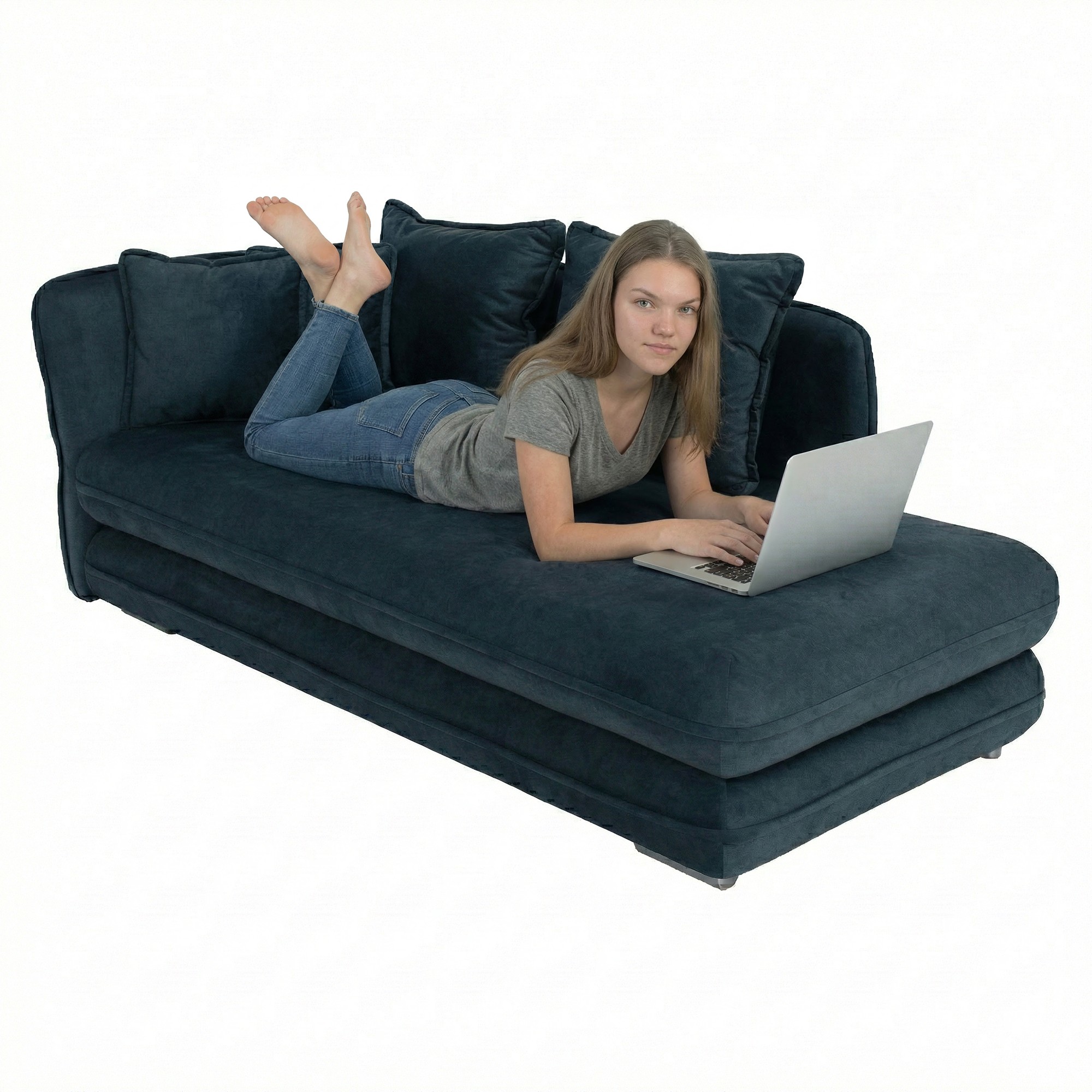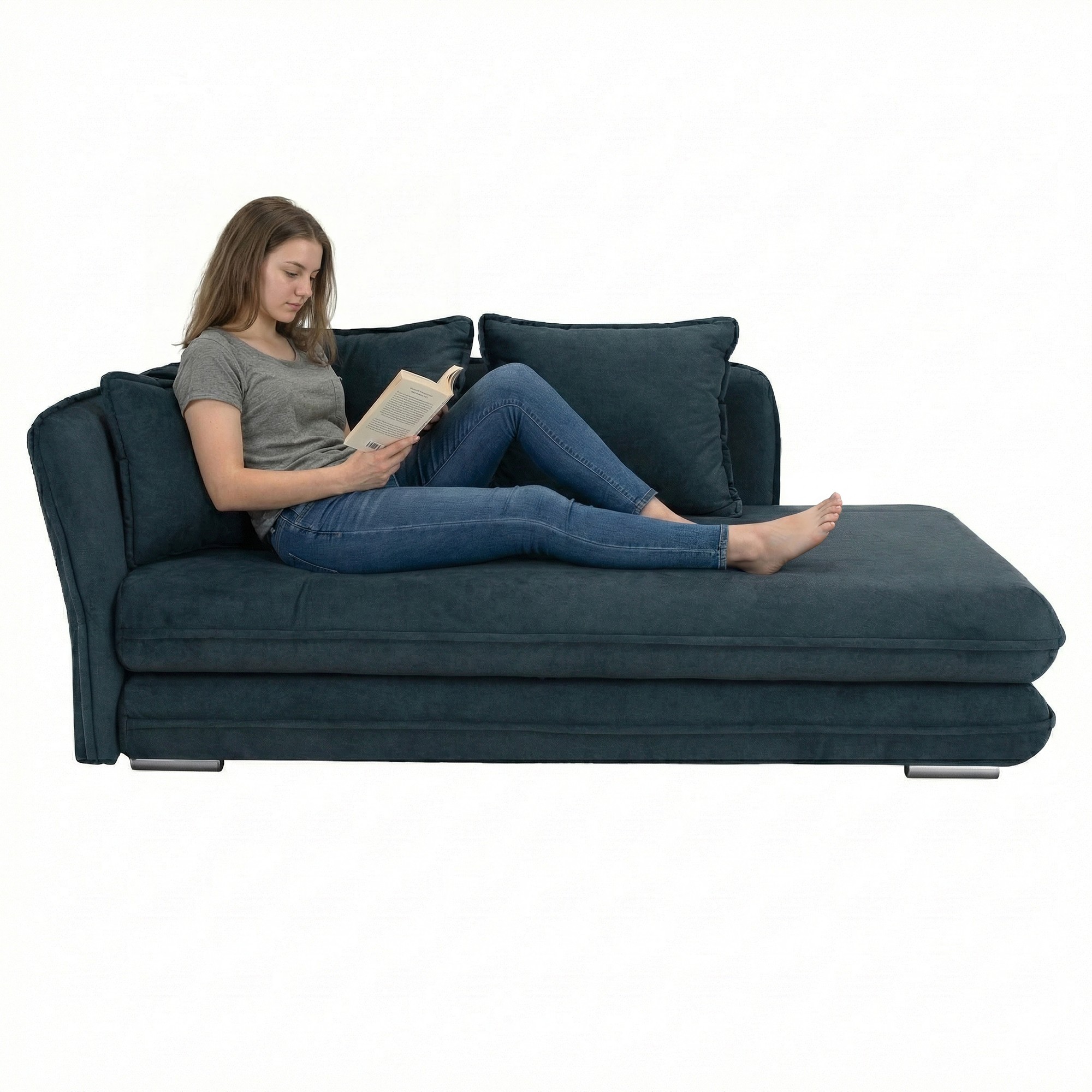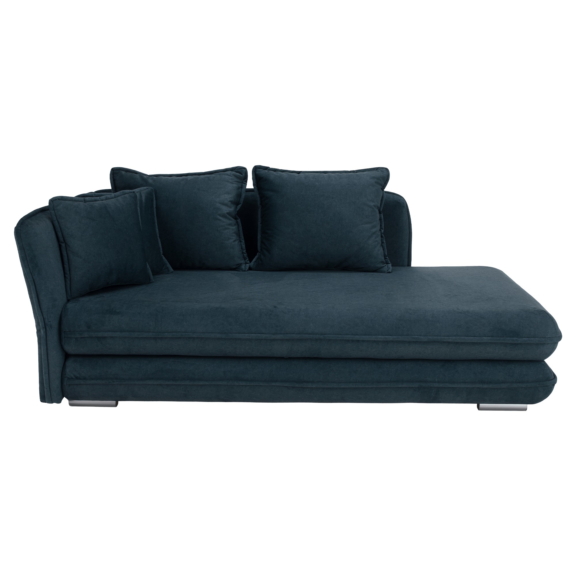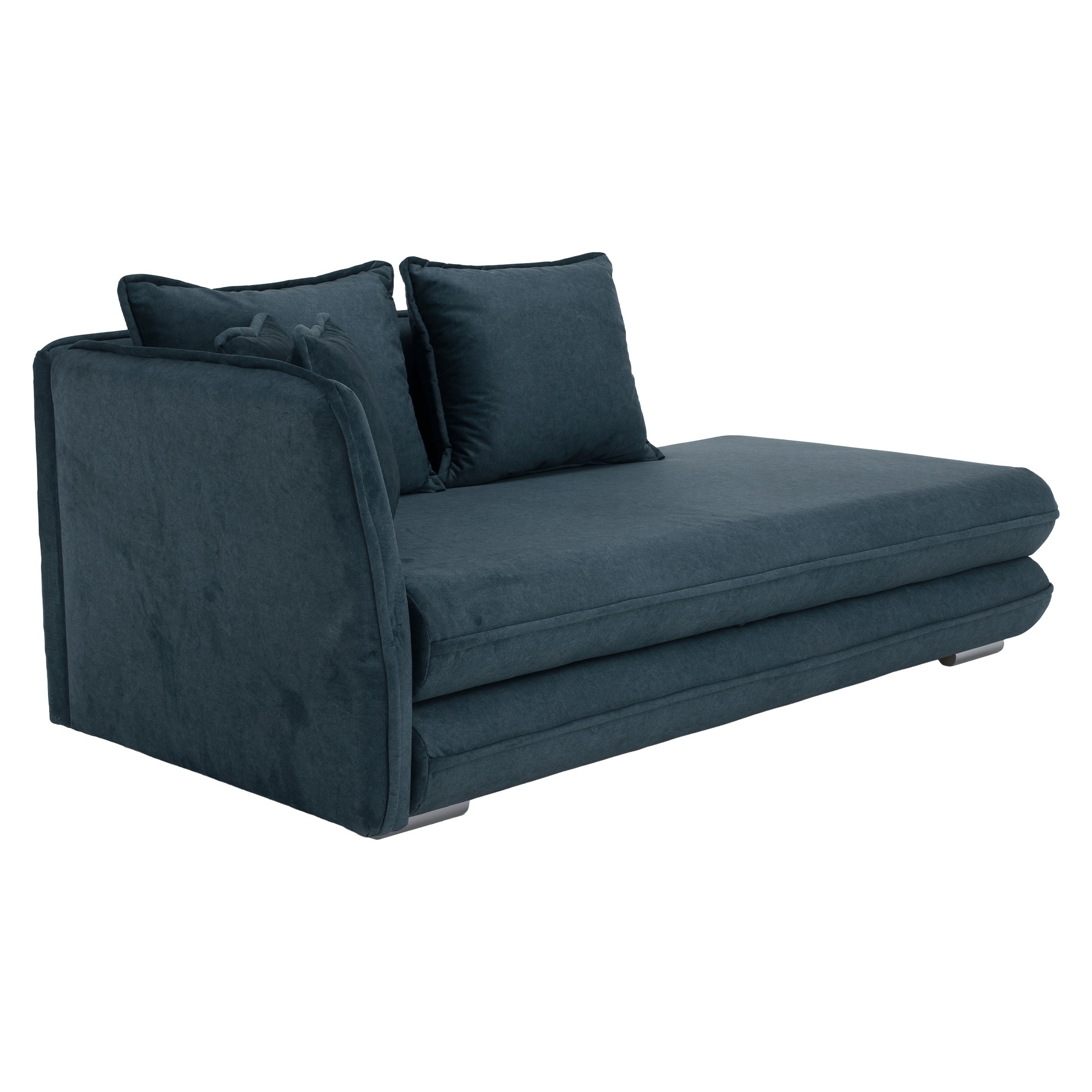 Leňoška LAMBA spája luxusný vzhľad s praktickým využitím a je výbornou voľbou pre tých, ktorí hľadajú štýlový a zároveň pohodlný doplnok do interiéru. Vyniká elegantným čalúnením z látky Whisper 12 v atraktívnej modrej farbe, ktorá je mimoriadne príjemná na dotyk a dosahuje vysokú oderuodolnosť až 100 000 oderov podľa testu Martindale. Jej jemné línie a čistý dizajn pôsobia moderne, no zároveň sa perfektne hodia aj do tradičného zariadenia. Rozmery leňošky sú (ŠxHxV): 220x110x85/100 cm, pričom výška sedu je 43 cm a hĺbka sedu sa pohybuje od 70 do 95 cm, čo umožňuje maximálne pohodlie pri leňošení. Jadro tvorí bonelová pružina, ktorá poskytuje optimálnu oporu pre telo a prispieva k celkovému komfortu. Nosnosť leňošky je 100 kg. Funkčné vlastnosti dopĺňa rozkladacia plocha na spanie s rozmermi 95x203 cm, vďaka čomu poslúži aj ako príležitostné lôžko. Vstavaný úložný priestor oceníte pri odkladaní prikrývok, vankúšov či iných drobností. Leňoška je dodávaná v ľavom prevedení a stojí na plastových nožičkách v striebornej farbe s výškou 5 cm od podlahy. Súčasťou balenia sú štyri vankúše - dva veľké (ŠxH): 68x60 cm a dva menšie (ŠxH): 48x43 cm, ktoré ešte viac zvyšujú pohodlie. Dodávaná je v demonte pre jednoduchší transport a montáž.