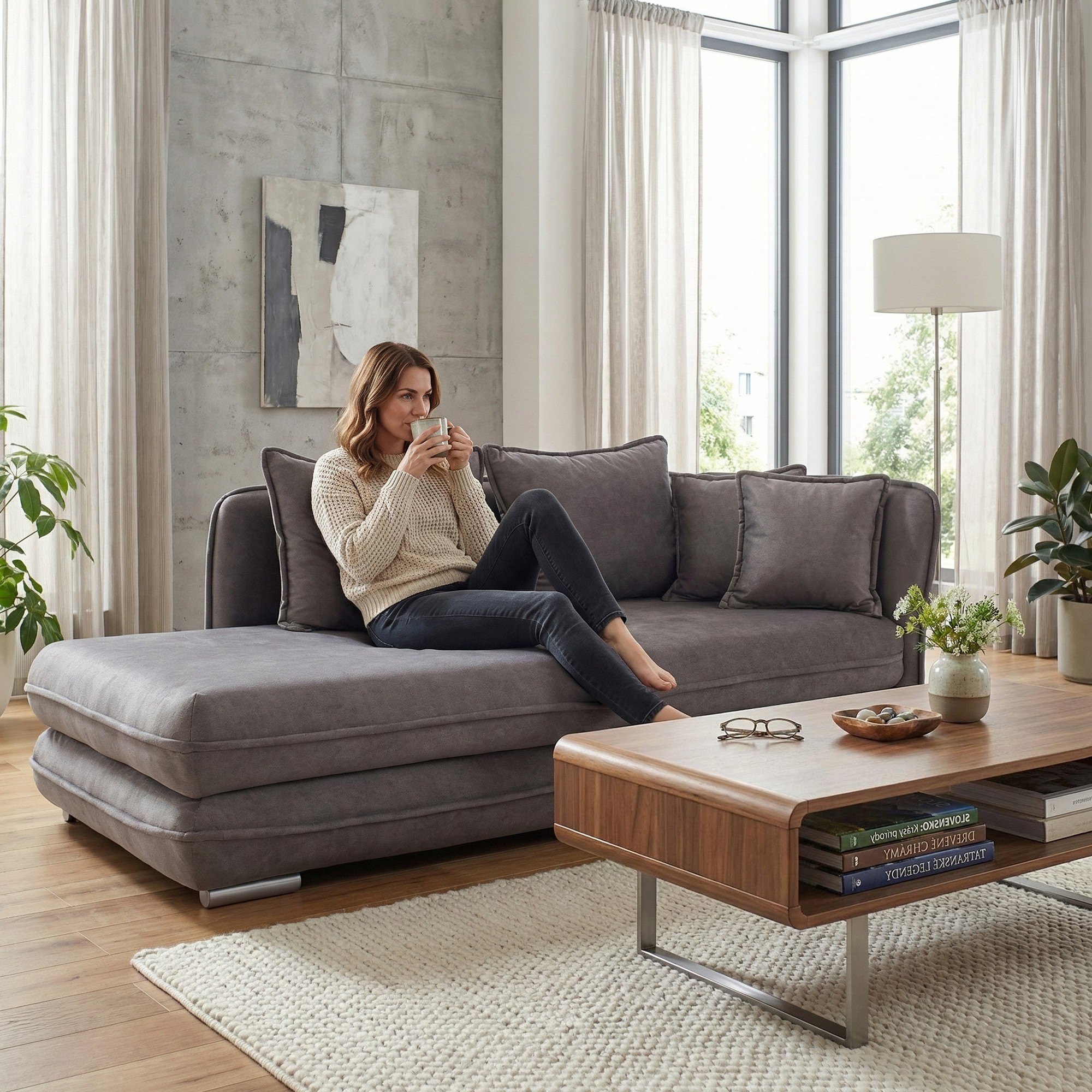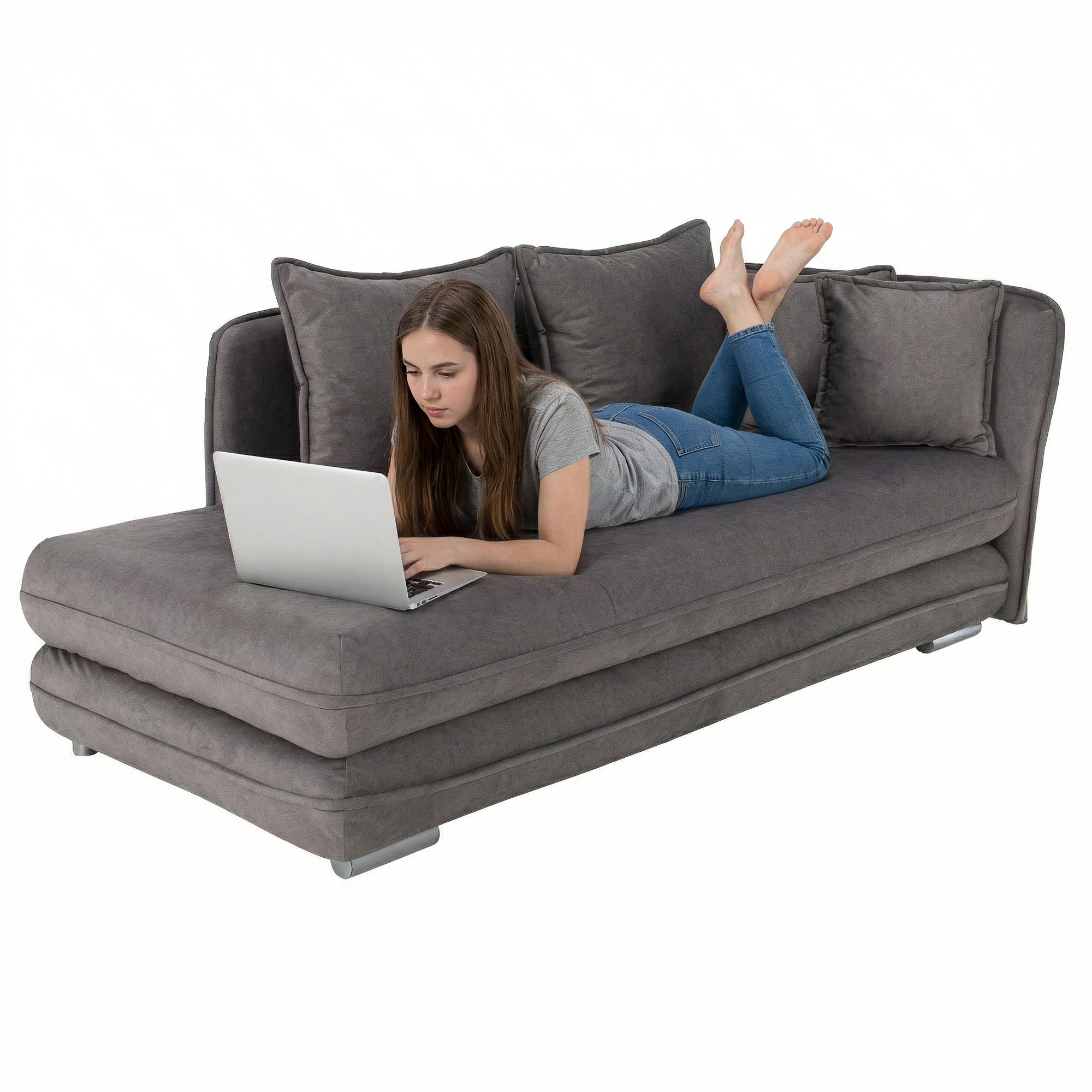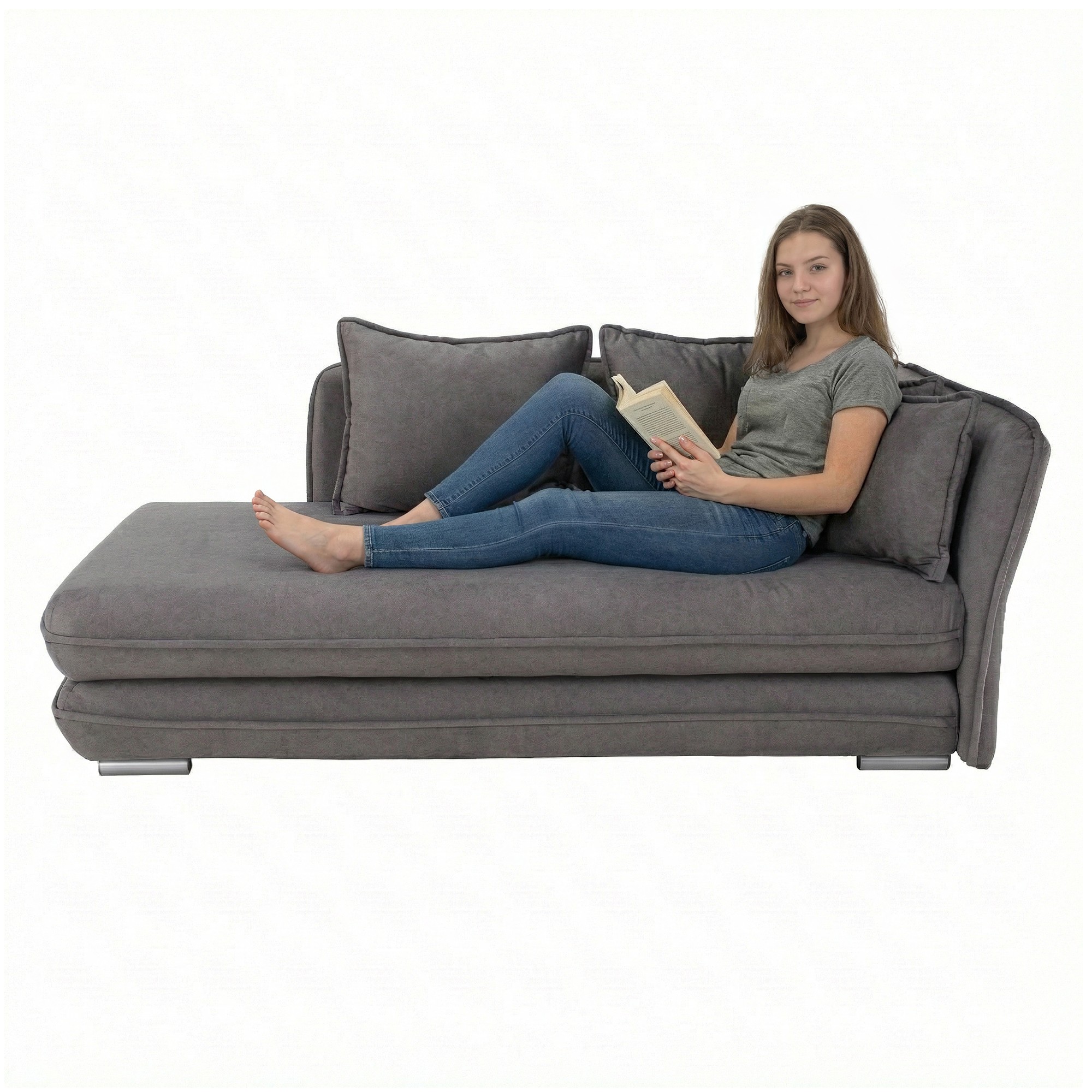 Leňoška LAMBA spája luxusný vzhľad s praktickým využitím a je výbornou voľbou pre tých, ktorí hľadajú štýlový a zároveň pohodlný doplnok do interiéru. Vyniká elegantným čalúnením z látky Whisper 17 v atraktívnej sivej farbe, ktorá je mimoriadne príjemná na dotyk a dosahuje vysokú oderuodolnosť až 100 000 oderov podľa testu Martindale. Jej jemné línie a čistý dizajn pôsobia moderne, no zároveň sa perfektne hodia aj do tradičného zariadenia. Rozmery leňošky sú (ŠxHxV): 220x110x85/100 cm, pričom výška sedu je 43 cm a hĺbka sedu sa pohybuje od 70 do 95 cm, čo umožňuje maximálne pohodlie pri leňošení. Jadro tvorí bonelová pružina, ktorá poskytuje optimálnu oporu pre telo a prispieva k celkovému komfortu. Nosnosť leňošky je 100 kg. Funkčné vlastnosti dopĺňa rozkladacia plocha na spanie s rozmermi 95x203 cm, vďaka čomu poslúži aj ako príležitostné lôžko. Vstavaný úložný priestor oceníte pri odkladaní prikrývok, vankúšov či iných drobností. Leňoška je dodávaná v pravom prevedení a stojí na plastových nožičkách v striebornej farbe s výškou 5 cm od podlahy. Súčasťou balenia sú štyri vankúše - dva veľké (ŠxH): 68x60 cm a dva menšie (ŠxH): 48x43 cm, ktoré ešte viac zvyšujú pohodlie. Dodávaná je v demonte pre jednoduchší transport a montáž.