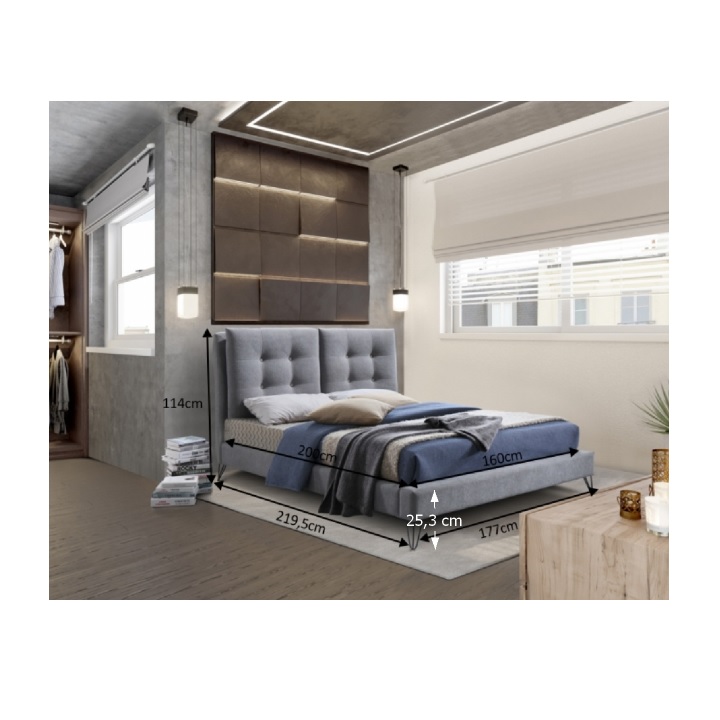 Čalúnená manželská posteľ s roštom Kolia 160 160x200 cm - sivá