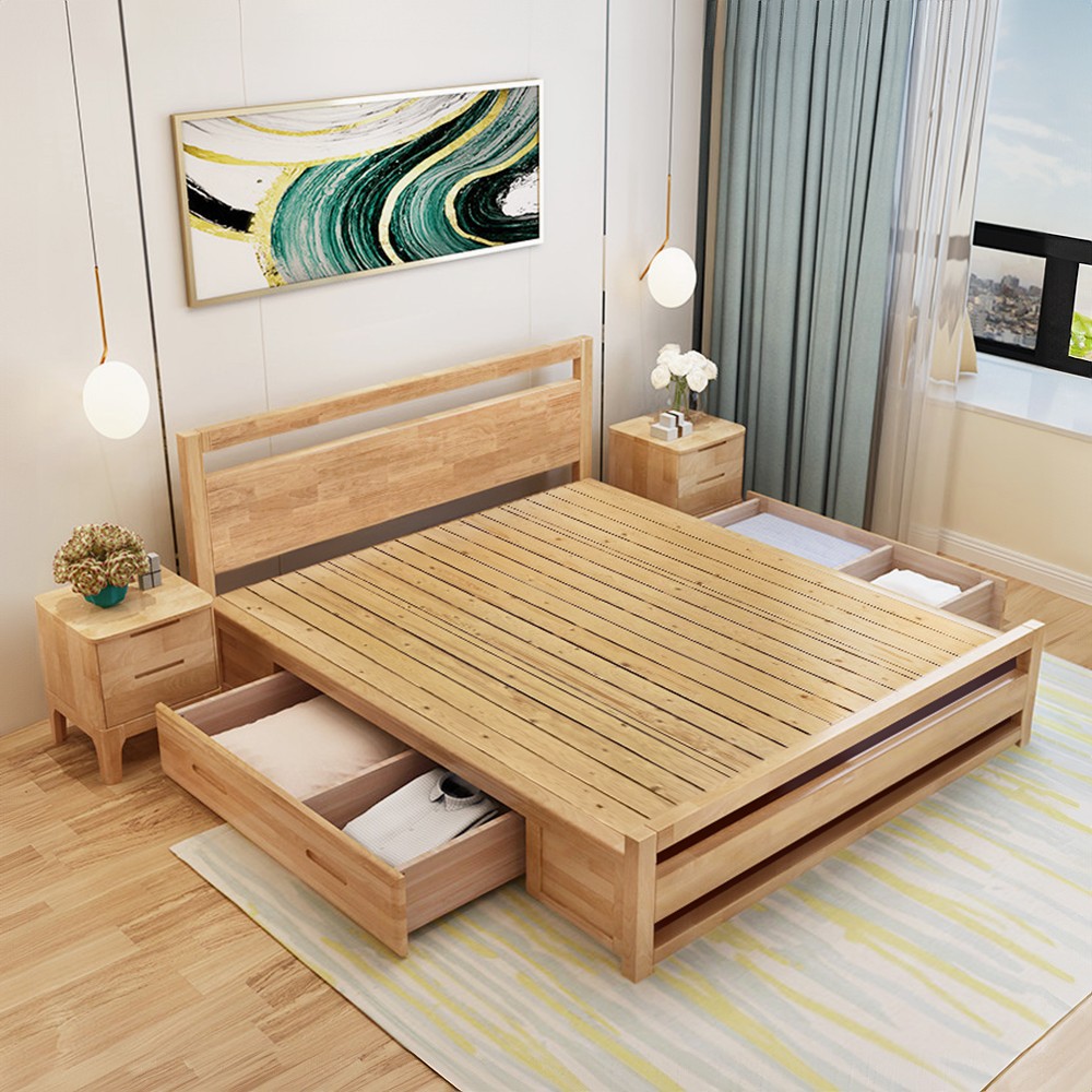 Manželská posteľ SHEILA zaujme moderným dizajnom a zároveň ponúka vysoký komfort na každodenný oddych. Je vyrobená z kvalitného kaučukového dreva v prírodnom odtieni, ktoré zaručuje pevnosť, stabilitu a dlhú životnosť. Posteľ s rozmermi (ŠxHxV): 161x208x90 cm poskytuje priestrannú plochu na spanie 160x200 cm a výšku rámu 42 cm. Súčasťou konštrukcie je praktický úložný priestor v podobe dvoch šuplíkov s rozmermi (ŠxHxV): 115x60x17 cm a nosnosťou 10 kg, doplnený o štyri odkladacie plochy, ktoré môžete využiť napríklad na posteľnú bielizeň či drobnosti. Posteľ je dodávaná s roštom z husto uložených borovicových lát s hrúbkou 1,4 cm, ktoré poskytujú optimálnu oporu pre matrac. Nosnosť jedného lôžka je 150 kg. Model sa dodáva bez matraca - odporúčame matrac s rozmerom 160x200 cm a minimálnou výškou 10 cm. Posteľ je dodávaná v demonte a bez vankúšov, nočných stolíkov a dekorácií.