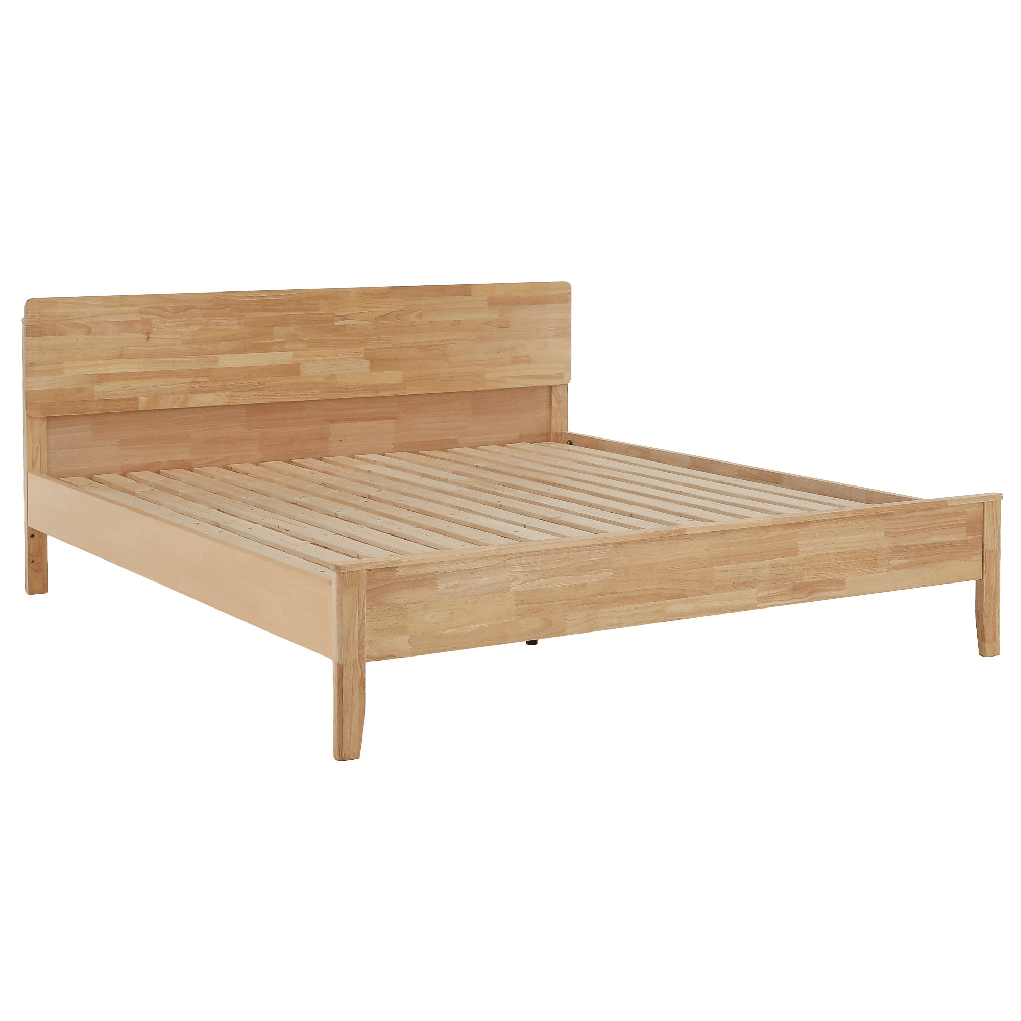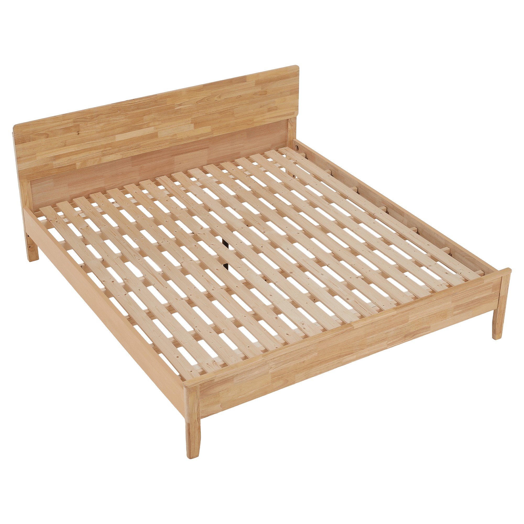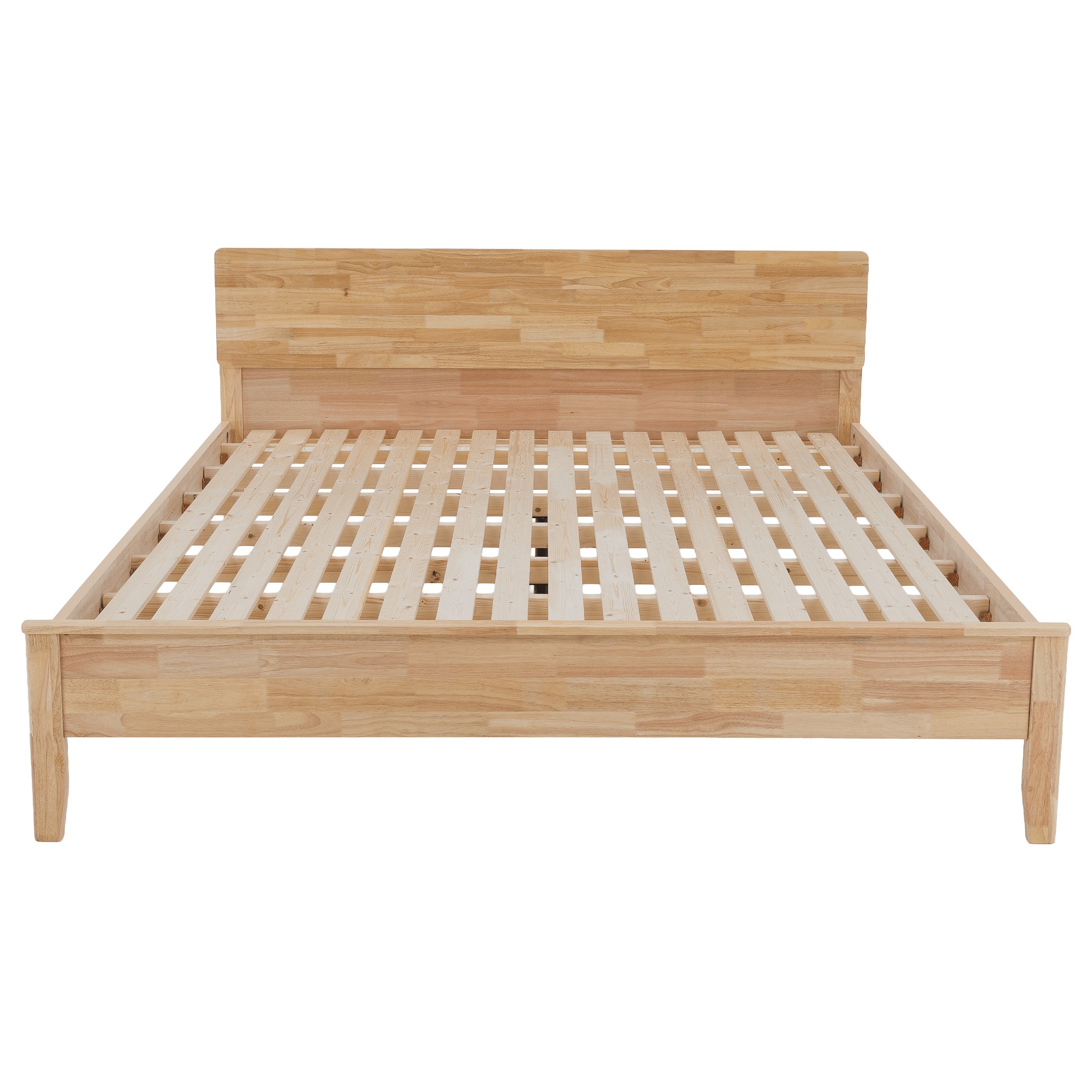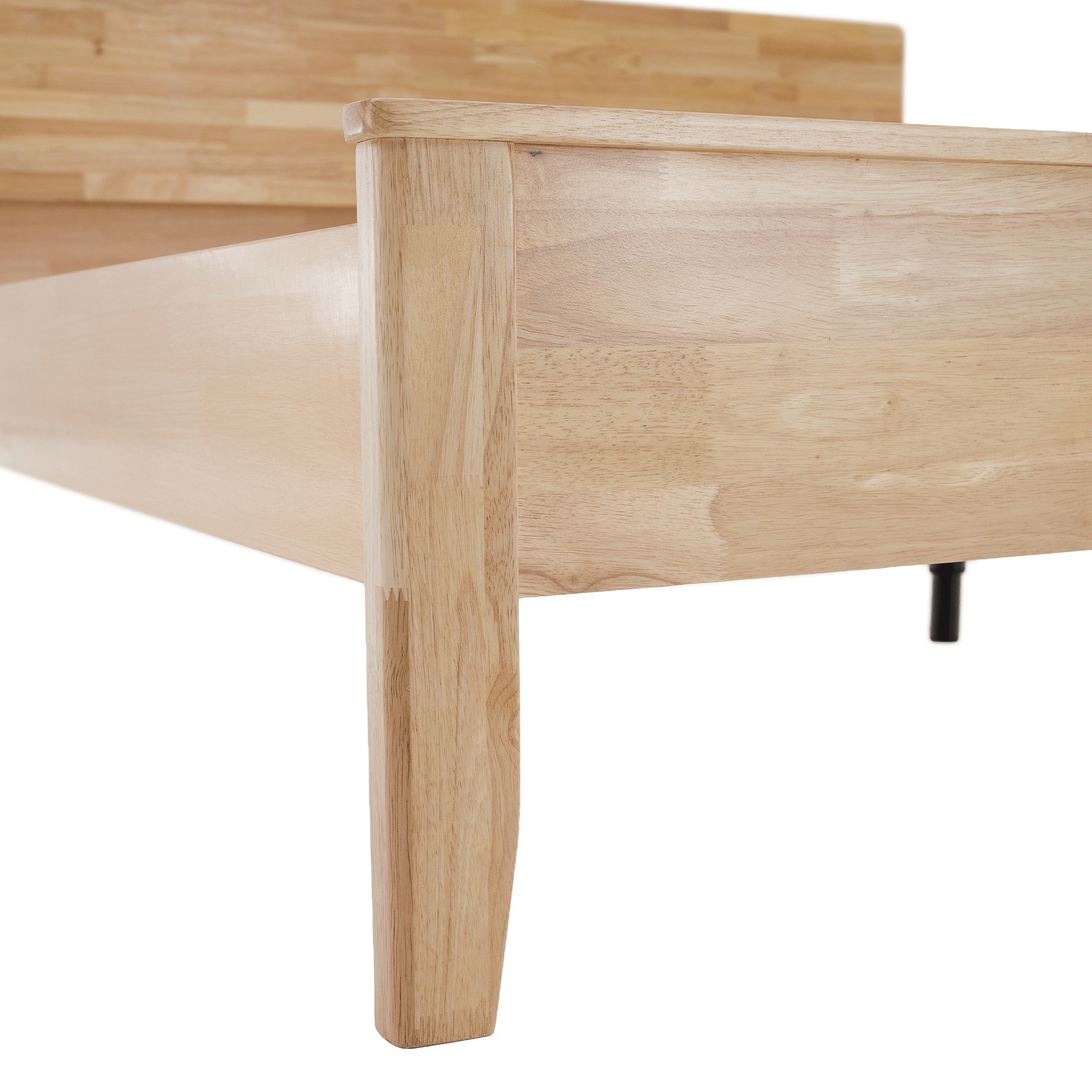 Manželská posteľ NOEMI poskytuje vysoký komfort a vytvára príjemné miesto určené na pokojný spánok, oddych aj relax po náročnom dni. Je vyrobená z kvalitného kaučukového dreva v prírodnom odtieni, ktoré zabezpečuje pevnosť, stabilitu a dlhú životnosť. Povrch masívneho dreva je ošetrený lakom, ktorý drevo chráni a zároveň zvýrazňuje jeho prirodzenú kresbu. Celkový vzhľad postele dopĺňajú štýlové nožičky, na ktorých je konštrukcia postavená. Posteľ sa dodáva spolu s roštom, ktorý je tvorený husto uloženými borovicovými lamelami, tie poskytujú matracu optimálnu oporu a prispievajú k pohodlnému spánku. Model sa dodáva bez matraca, pričom odporúčaný rozmer matraca je 180x200 cm. Celkové rozmery postele sú (ŠxHxV) 187,5x207x87,5 cm a plocha na spanie má rozmer 180x200 cm. Výška rámu postele je 41,5 cm a maximálna nosnosť je 150 kg na jednu osobu. Rošt obsahuje borovicové laty s hrúbkou 1,4 cm a šírkou 7 cm, pričom medzera medzi jednotlivými latami je 4,5 cm. Matrac je možné zapustiť do hĺbky približne 2 cm. Posteľ sa dodáva bez matraca, vankúšov, nočných stolíkov a dekorácií. Dodanie je v demontovanom stave, preto je potrebná montáž