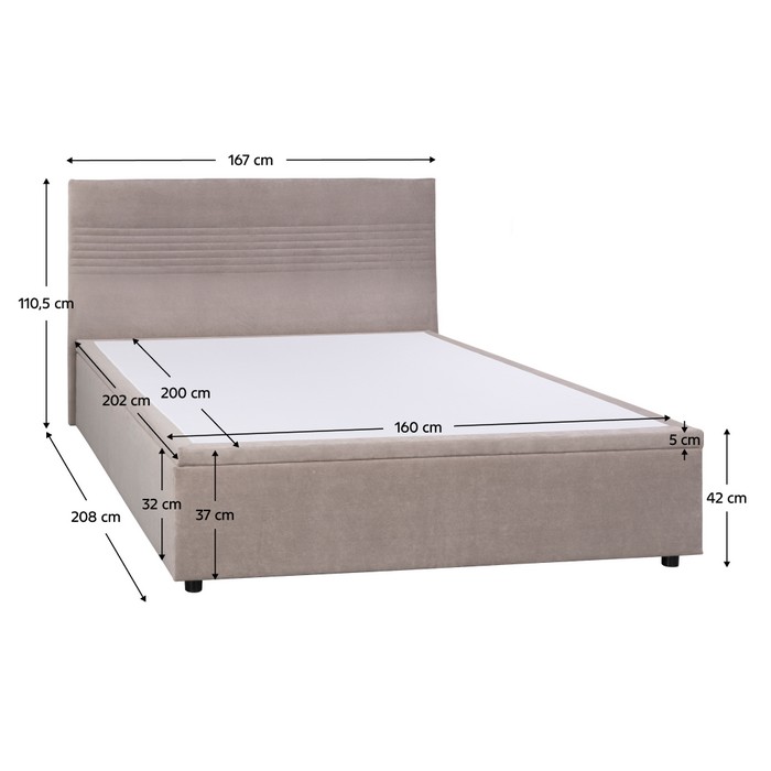 Manželská posteľ RUNOL 160 ponúka priestrannú plochu na spanie s rozmerom (ŠxD): 160x200 cm a je čalúnená odolnou béžovou látkou Mono 233 s oderuodolnosťou 100 000 cyklov Martindale. Jej dominantou je luxusne pôsobiace dekoratívne prešívané čelo, ktoré ponúka pohodlnú oporu pri sedení. Konštrukcia stojí na stabilných nožičkách s výškou spodného priestoru 5 cm. Súčasťou postele je rošt na plynových pántoch, ktorý sa ľahko zdvíha a sprístupňuje praktický úložný priestor s nosnosťou 30 kg (určený na rovnomerné zaťaženie). Nosnosť postele je 100 kg na osobu. Model je dodávaný s roštom, bez matraca - odporúčame dokúpiť matrac 160x200 cm, minimálna odporúčaná výška je 6 cm. Celkové rozmery postele sú (ŠxHxV): 167x208x110,5 cm. Vodoodolná textília, moderný vzhľad a kvalitné spracovanie robia z tejto postele praktický aj štýlový kus nábytku. Produkt je dostupný len na objednávku, s dodacou lehotou 3-5 týždňov, a dodáva sa v demonte.